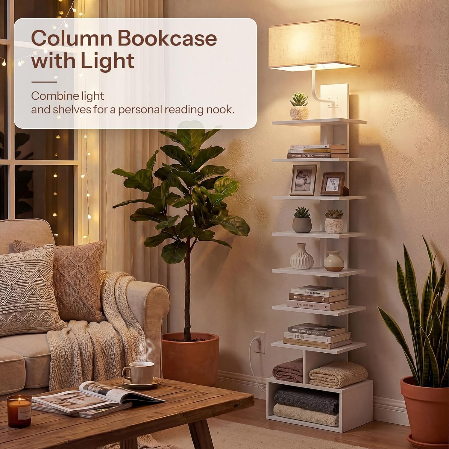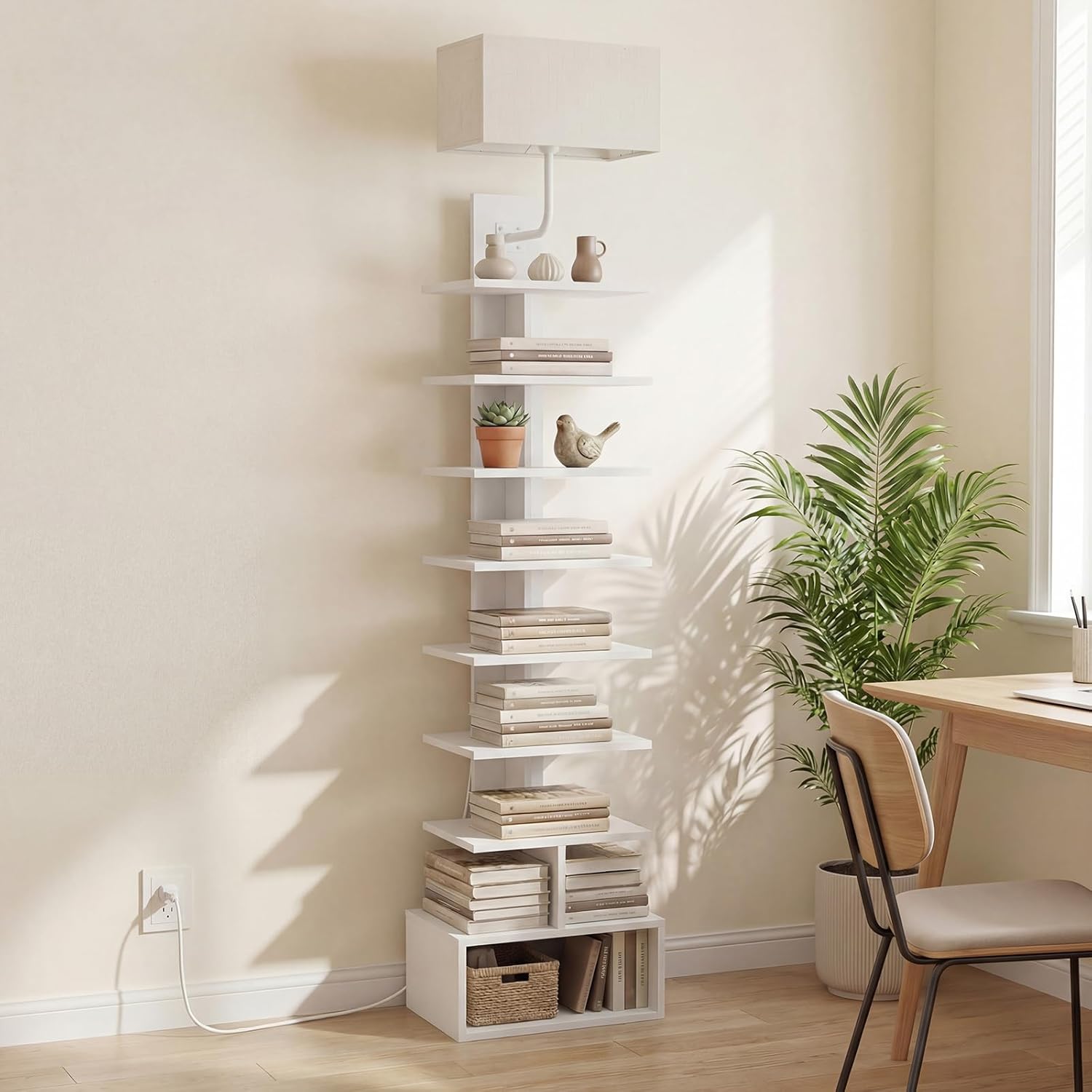 HOOBRO Computer Desk, Home Office Desk with Power Outlet, Modern Study Writing Desk with 3 Hooks for Study Room, Home Office, Sturdy and Stable, Easy to Assemble HOOBRO Narrow Bookshelf, 9-Tier Spine Book Shelf with Light, Tall Floor Standing Bookcase with Storage Cabinet, Corner Book Shelf for Living Room, Office, Bedroom, Study
