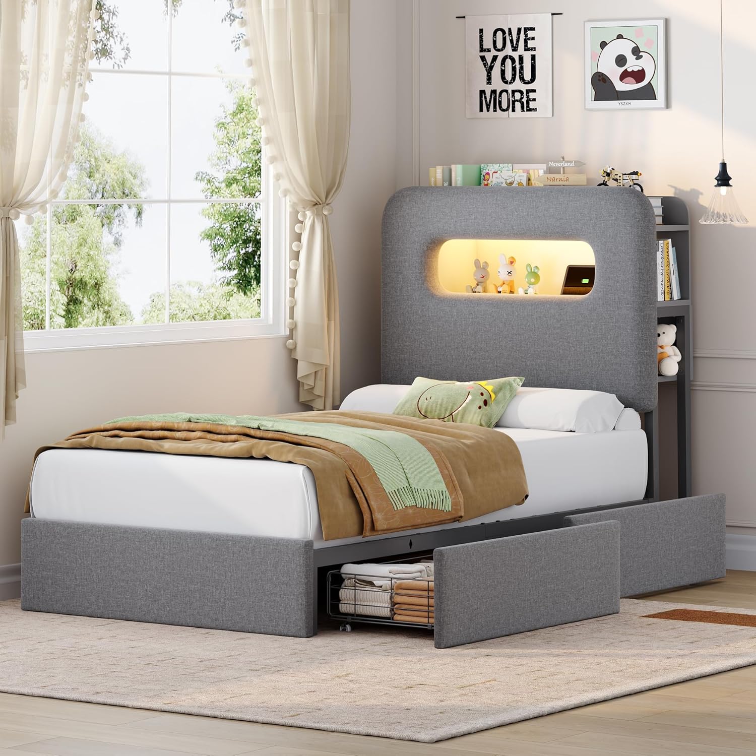 | Other Special Features of the Product | Storage Headboard, 2 Drawers, Charging Station, LED Lights |