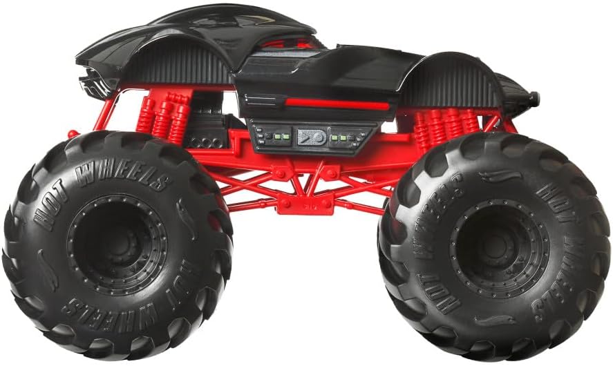 Rule the arena with the imposing power of the Hot Wheels Oversized Monster Trucks Star Wars Darth Vader! This colossal 1:24 scale juggernaut features a menacing Darth Vader design, complete with oversized wheels that crush the competition. Inspired by the legendary villain, the truck features a dark, Vader-inspired colour scheme and character details that make it instantly recognisable. He was built to rule the Monster Jam scene, just as Darth Vader ruled the galaxy!