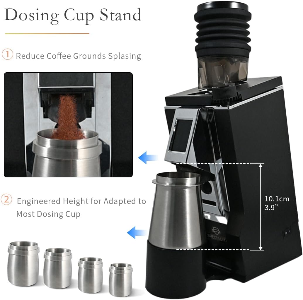 Incline Stand and Dosing Cup Stand Kit Color - Black; Material - ABS; Packing - 1pc tilted angle base; 1pc dosing cup stand; Compatible with - Eureka Mignon Model espresso grinder. (DIDN'T fits for Eureka Mignon MCI/MT 220/MG50E/XL/Zero 65 AP)