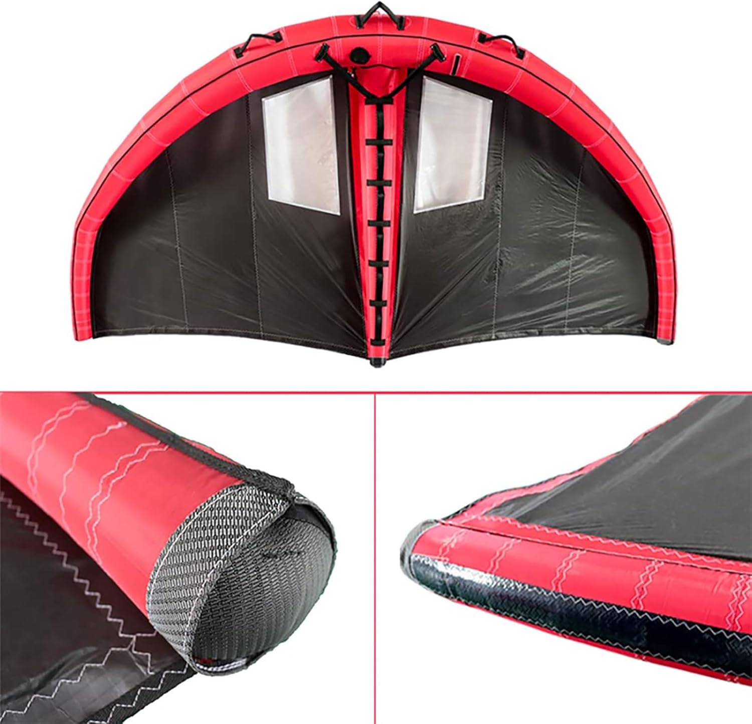 Portable and easy to store - can be storage in the complimentary bag after deflated.Creative bird wing design inflatable kite with solid frame for windsurfing, part kiteboarding, board sport, surfing, standup paddle board, skateboard, E-Board, foil and other water flying sports.Premium nylon surface, double air sac design- leak-proof, lightweight and durable.Simple and convenient to use- Do not need any harness, control bar, lines, mast, battens or other accessories.Specification:Material: NylonColor: BlackSize: 320x185cm/125.98x72.83 inchWeight: 5.17kgPackage Includes:1 x Kitesurfing Swing1 x Pumping valve Adapter1 x Carry Bag1 x Wrist LeashNotes:1. Please allow 0-1 inch error due to manual measurement. Thanks for your understanding.2. Monitors are not calibrated same, item color displayed in photos may be showing slightly different from real object.
