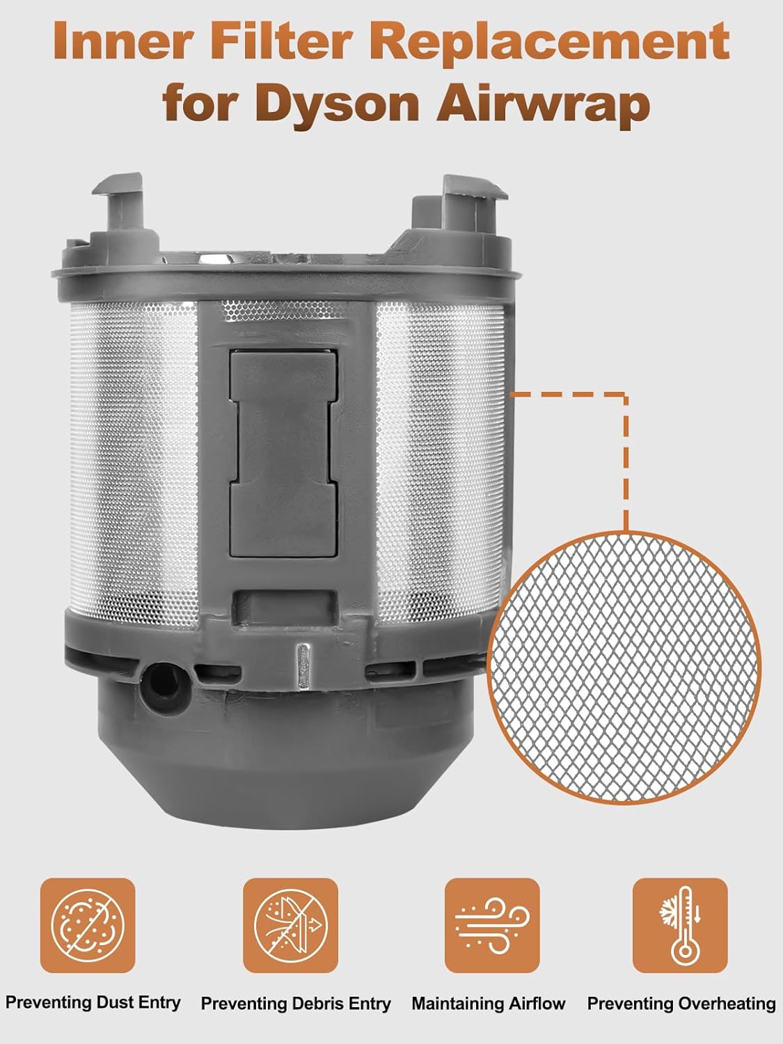 • Package Contents: 1pc Inner Filter Replacement Cover Cage for Dyson Air Wrap. 1pc Outer Filter Cage Cover Replacement and Cleaning Brush for Dyson Airwrap. ⚠️Please note: The machine is not included