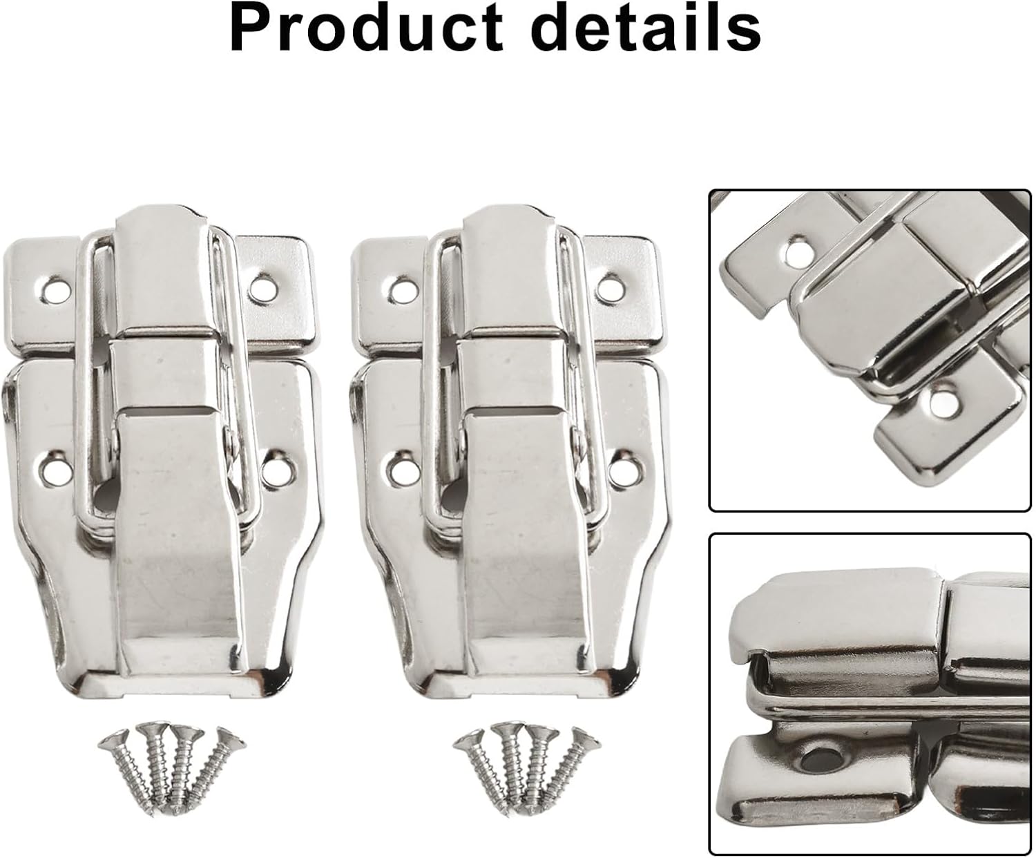 Features:*Made of materials,*Suitable For:Suitcase, Toolbox, Trunk, Chest, Case*Features: for Lift-Off*Model:Case ClipSpecifications:Material:ironColour:Silver As picture showBattery Required:NoStyle:ModernType:Case ClipItem Weight:33.89gSize: 78*48MMPackage Contents:Number in Pack: 2 PCSNote:1. The real color of the item may be slightly different from the pictures shown on website caused by many factors such as brightness of yourand light brightness.2. Please allow slight manual measurement deviation for the data.