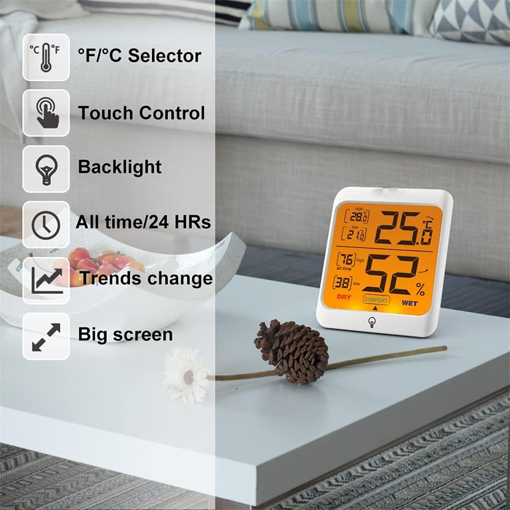 Temperature And Humidity RangeTemperature range: -20℃~70℃Humidity range: 10%~99%Temperature And Humidity AccuracyTemperaure tolerance: +/- 1.1℃Humidity tolerance: +/2%(30%-80%), +/3%(<;30%, >80%)Display● °C/°F: Press once to change the temperature display unit in °C or °F.● ALL TIME/24 HRs: Press it to show the maximum and minimum temperature and humidity recorded since last reset (ALL TIME option) or in the past 24 hours since last reset (24 HRs option)● Comfort Level: DRY, COMFORT, WET.If humidity is below 30%: Dry.If humidity is between 30% to 60%: Comfort.If humidity is above 60%: Wet.● 1.↗ indicates the temperature & humidity is in increasing trend.2.→ indicates the temperature & humidity is in a no change trend.3.↘ indicates the temperature & humidity is in a decreasing trendThis auto-dimming display shows the current date, time, and barometric pressure, a must for all full-fledged thermometers weather instruments and weather stations for home