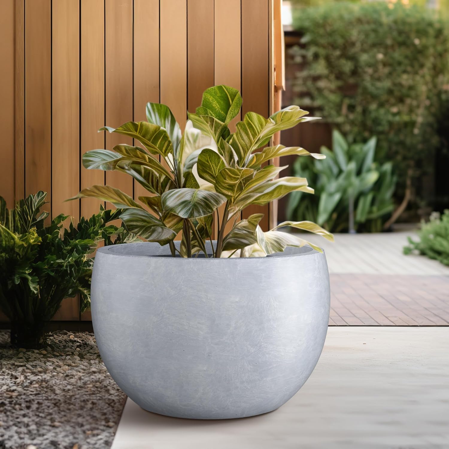 These elegant modern plant pots with an authentic natural concrete finish with visible pores will add an elegant touch to your décor and it is ideal for endless succulent designs.The smooth lines and round shape of these planters will help you maintain a sleek look throughout your space, while holding a good amount of plants without looking crowded .There is a drainage hole create a healthy living environment for your plants. Planters were handmade of lightweight concrete through an ecofriendly manufacturing process. The result is an exceptionally durable, weather and damage resistance, strong UV resistant ability,well-designed planter that will stand the test of wind, rain, hot and cold season.The simple, clean look of the exterior makes it easy to fit these containers in any home,patio or throughout your garden .You can use it indoors and outdoors freely due to its lighter weight.