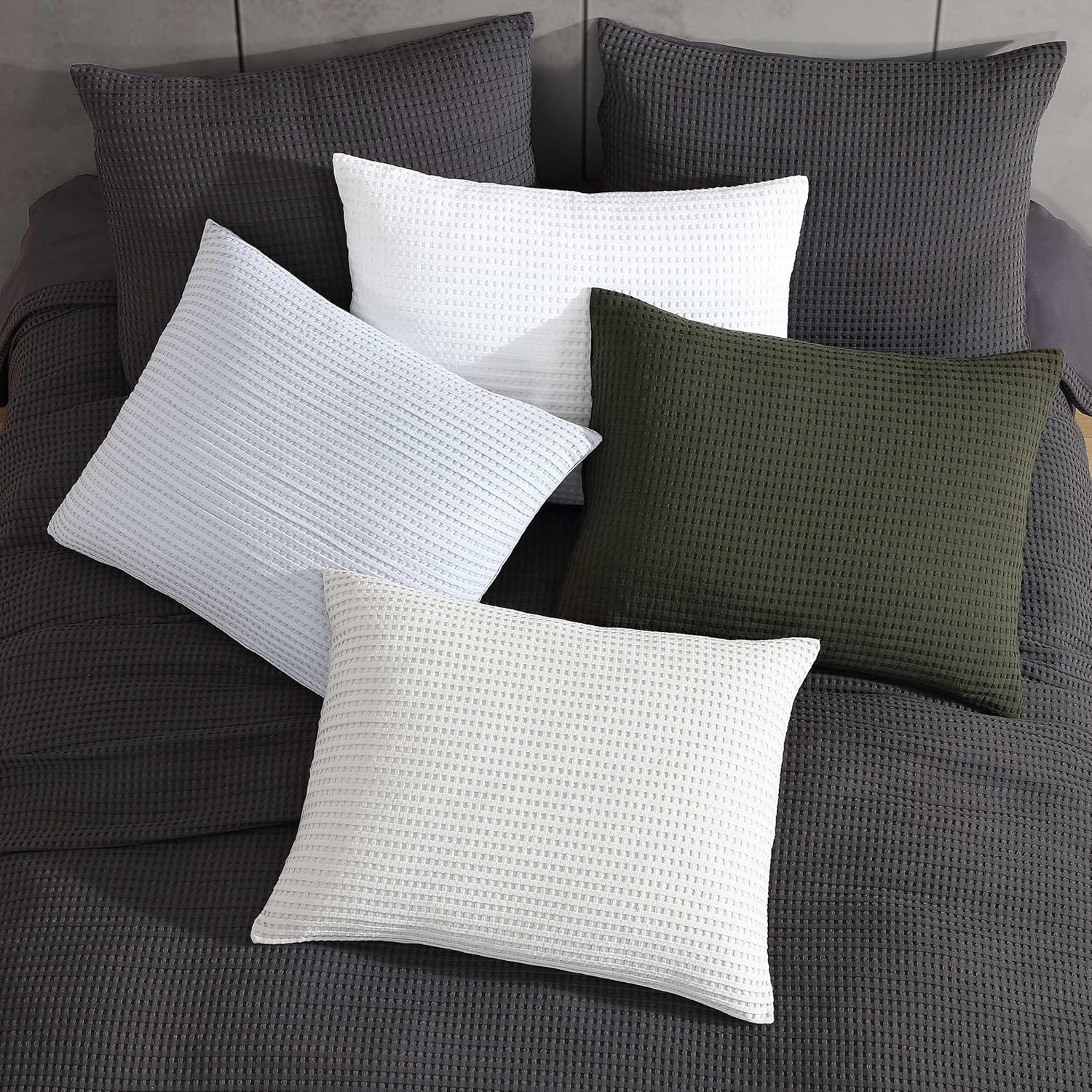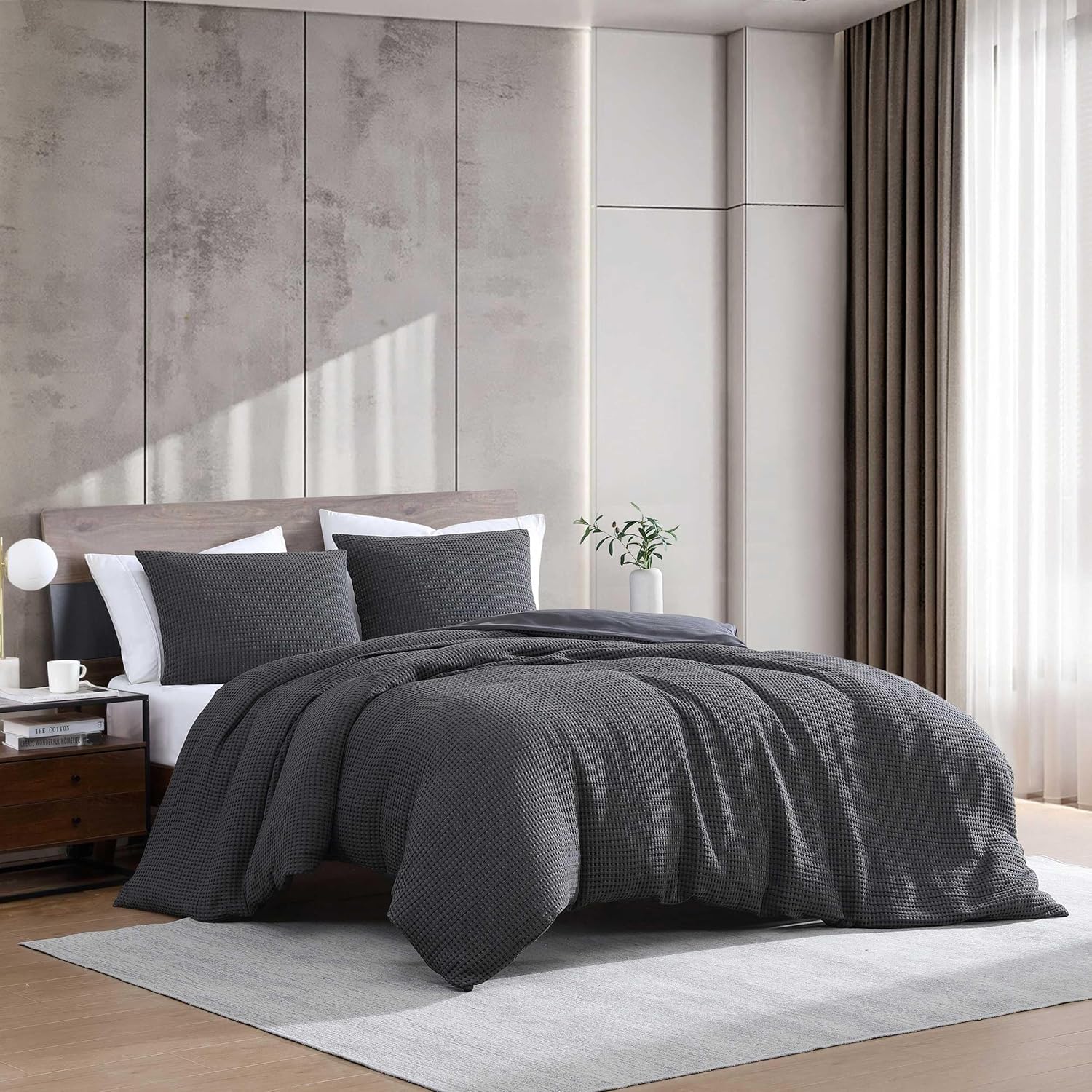 The Kenneth Cole Solid Waffle Duvet Cover Set provides both style and comfort to your bedroom. Crafted by the renowned fashion brand Kenneth Cole, this duvet set reflects their commitment to quality and sophistication. The waffle duvet is made from high-quality durable fabric, a synthetic material known for its softness, and easy care. The fabric is also hypoallergenic, making it an ideal choice for those with allergies. The set is available in multiple colors and sizes. It is machine washable making it convenient and easy to clean.