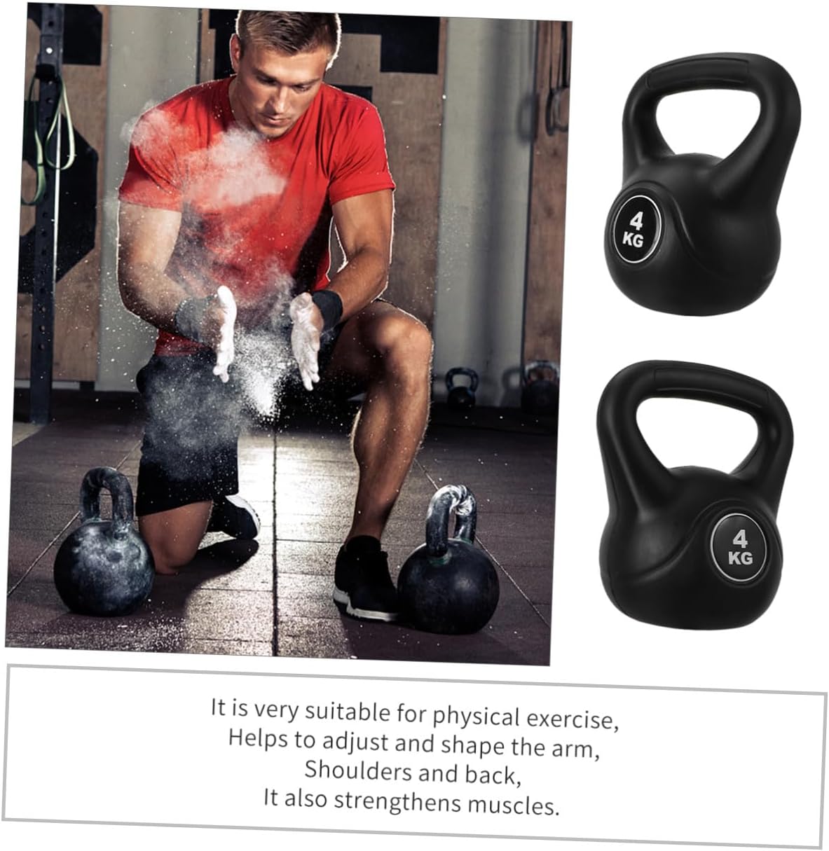 Package List 1 x kettlebell Characteristics - Great for physical exercise: helps adjust and shape your arms, shoulders, back, and also strengthens your muscles kettle-bell exercise fitness. -Product Info:Plastic kettle bell -Material: Plastic. - Anti handle: it is equipped with comfortable PVC texture handle to prevent slipping and ensure your safety deep squat equipment. -Color: Black. -Size: 21.00X20.00X13.00cm/ 8.25X7.86X5.11in. - Training can also increase the strength and endurance of your muscles because you have to keep your body in balance throughout your workout kettle-bell. - It is made of material and durable. - Training helps your metabolic rate, and indirectly, you're likely to burn more fat in your body because you've increased your muscle mass with continuous bell training fixed kettle-bell.Goods Descriptionkettle-bell exercise fitness It is a great gift for those who want to exercise.adjustable kettlebell It is very suitable for physical exercise, helping to adjust and shape your arms, shoulders, and back, while strengthening your muscles.fitness pot bell The kettlebell handle is ergonomically designed, matte non-slip, sturdy and durable