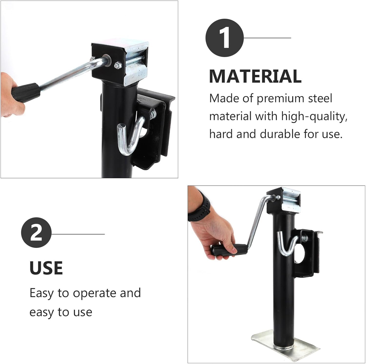 Package List 1 x Stabilizer Jack Features -Size: About 40.70X19.00X9.50cm/16.00X7.47X3.73inch. -Color: Black. -Loading capacity: 900KG Stabilizer Jack. -Material: Steel. -Product Info:Side-rotating trailer jack -It is made of and durable materials, practical and sturdy, easy to use. -The integrated grip allows for easy raising and lowering the vehicle, suitable for motor repair shop Supporting Jack. -It can be operated in a narrow space to help you avoid injuries while Lifting Jack. -Keep your RV or trailer stable and safe during operation, not easy to fall and break Car Supporting Jack. -With this useful product, you can greatly reduce the energy to repair vehicle Support Bracket.Goods InformationAuto Supporting Jack If you are looking for a professional and trailer stabilizer jack, then your research is over here.Manual Stabilizer Jack Adopted of premium and durable material, it is practical and sturdy for long time use.Car Supporting Bracket Great supporting tool for RVs, trailer, truck, ship, etc.Car Supporting Jack It is easy to use and bring you much convenience