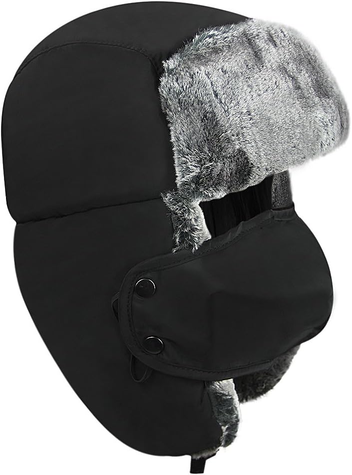 Unisex Big Children Kids Baby Girls Boys Faux Fur Winter Warm Trapper Hat Fleece Thermal Outdoor Hunting Ski Russian Ushanka Cap Trooper Pilot Hat with Detachable Ear Flaps,Windproof Face CoverRussian Style Hat---Could be attached under the chin or you could flip the side flaps up and attach it over the head and even remove the mouth Cover allowing this to be worn also without the full coverage.Ear Flaps Hat---With the ear flaps down, chin strap fastened, and face cover snapped on, this cap will heat up a head in a hurry! Not as classy looking as the all fur versions, but probably more practical for daily use when one is forced to be out and about on frigid winter nights.Mutli-function Cap---Very Perfect for hunters, trappers or any other winter outdoor activities, like skiing, snowboarding, hiking, climbing, fishing, hunting,etc.The one-size-fits-all---easily fits, stays comfortable and is a perfect fit for children head circumference 50-55cm. The exceptionally breathable fleece hood adds to the overall comfort. Extremely breathable fleece hood is you best partner on the road in bitter-cold conditions.Winter Warm Pilot Hat---suit for winter warm gift (Halloween, Thanksgiving,Christmas, New Year, Holiday, Birthday)Good As A Gift---Novel mouth warmer cover, warm fashion, metal buckle adjustment, easy removal, better visual effects. Perfect gift for daughter, son, nephew, niece,etc children and teenager boys girls
