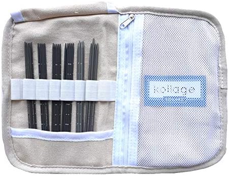 Square double pointed needles, 6 sizes 0-3 US of 5 needles, includes small soft shell pouch with a zippered pocket. Black stamp pattern with soft rope to keep needles secure.