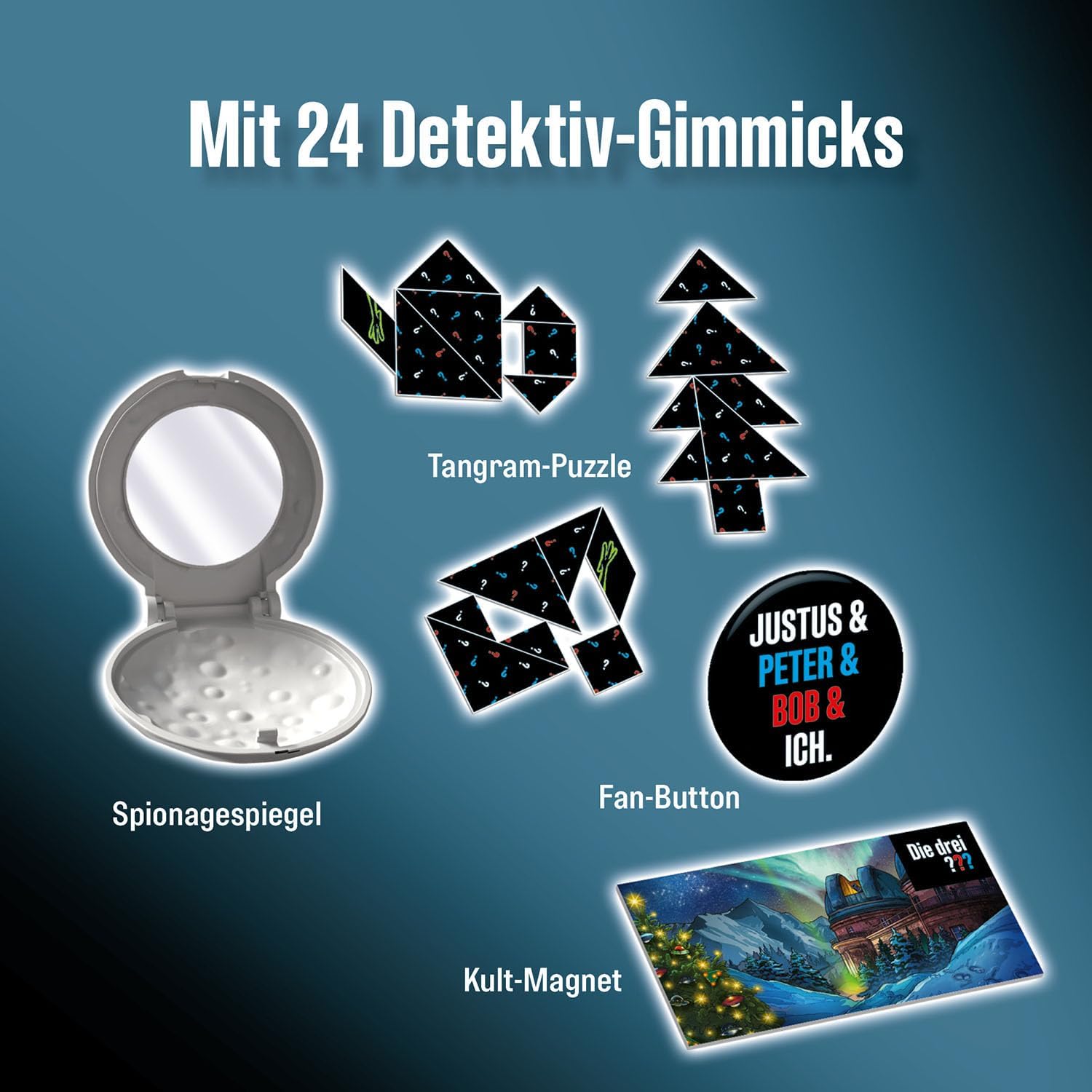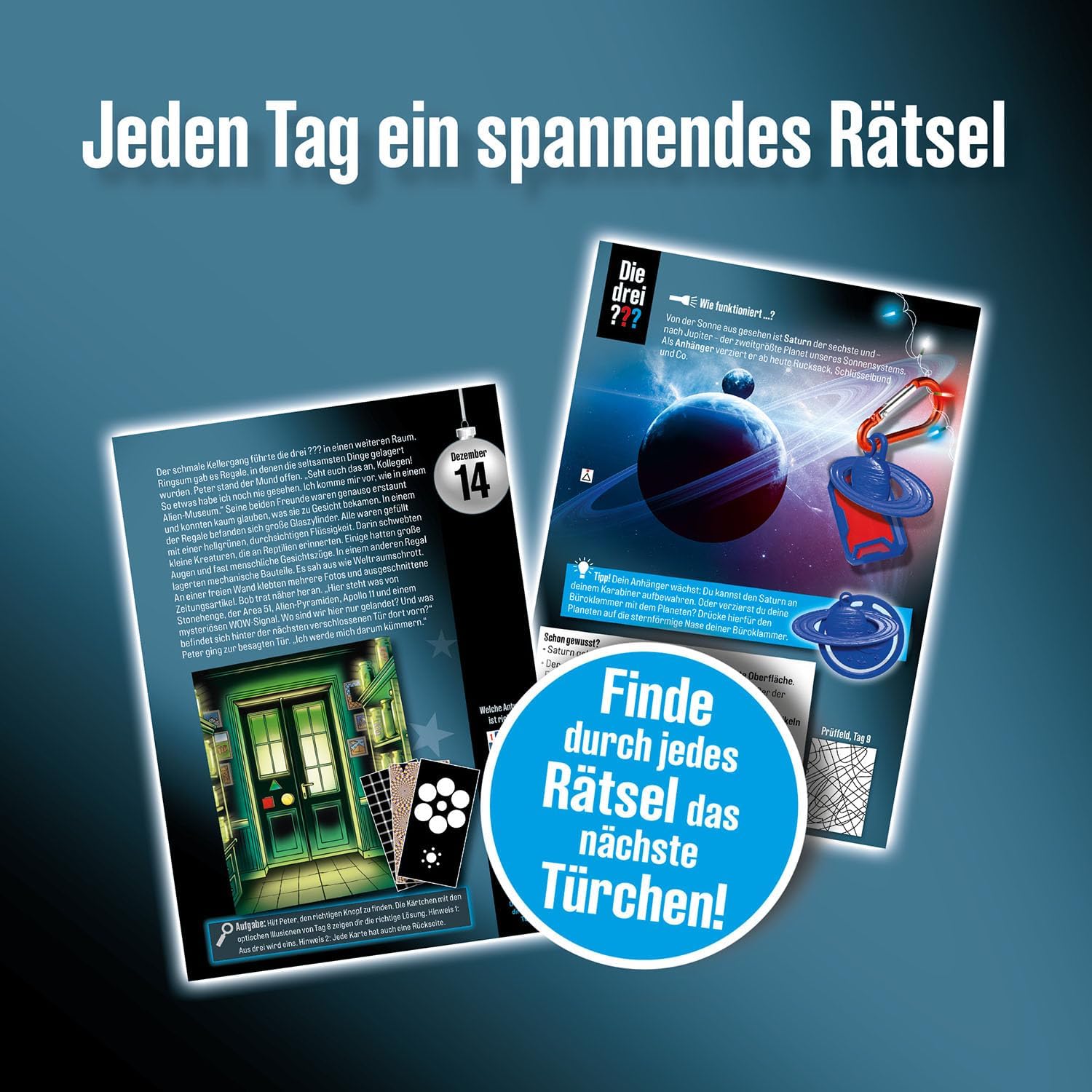 Product Description As more and more foreign objects appear it is clear to Justus, Peter and Bob that they can't go with right things here. 24 days, chapter by chapter, the exciting detective story unfolds. Every day you have to solve a mystery that leads to the next door. An interactive puzzle experience for detective and puzzle fans ages eight and up with 24 detective surprises! Manufacturer Contact Information Franckh-Kosmos Verlags-GmbH & Co. KG; kosmos.de/servicecenter