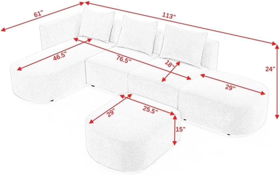 Sturdy solid wood frame, loop yarn fabric, filled with high-density sponge and pocket spring, making this sectional sofa beautiful and comfort, it can be perfectly matched with your apartment, house or conference room.This sectional sofa not a fixed combination , the every single chair and ottoman can be moved and re-matched. Our modular sectional sofa is based on a solid hardwood frame with foam cushions built into the fabric, each single seat is equipped wit a back pillow for comfort. Plastic black legs perfectly support the entire sofa and can be used for many years.Enjoy the fun of assembly with your partner! This sofa needs to be assembled, instructions manual and tool included, packages may arrive separately within a few days.for small or large spacious living areas to accommodate different spaces and used with other furniture's. MaterialUpholstery:Loop Yarn FabricFrame: Eucalyptus wood+PlywoodSeat Fill:Foam 1.6 lbs./cu. ft.Legs: Plastic 1inchSeat Construction Pocket Spring+SpongeSize:As shownSet Includes1*L Shape Sectional Sofa(no other presentation items included).Notice:1. Due to manual measurement, please allow 2-3% error, before you bid, please make sure you don't mind.2. The color may vary due to different displays, please refer to the actual product.
