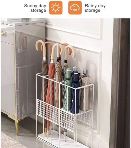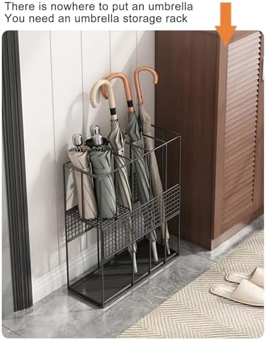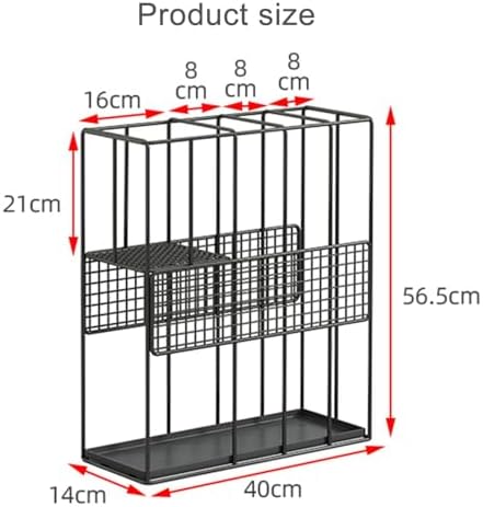 This large-capacity umbrella stand features multiple compartments designed to accommodate a wide range of umbrella sizes, from standard to oversized. The added top shelf is perfect for storing small items like keys or umbrella accessories, maximizing your space efficiently. Crafted for durability, its robust structure provides exceptional stability, ensuring it remains upright even when fully loaded. The smooth metal surface not only resists stains but also makes maintenance effortless. **Product Name:** Commercial Metal Umbrella Stand **Material:** Metal **Dimensions:** 40 x 14 x 56.5 cm **Style:** Simple and Modern Whether you're using it in an entryway, office, or commercial setting, this umbrella stand combines functionality with a contemporary design that enhances any space. It's an ideal solution for keeping your umbrellas organized and easily accessible, while also adding a sleek touch to your decor. Note: Please be aware that product dimensions are manually measured, which may result in slight discrepancies. Color variations may occur due to differences in monitor resolutions. If you encounter any issues after receiving your package, feel free to reach out to us.