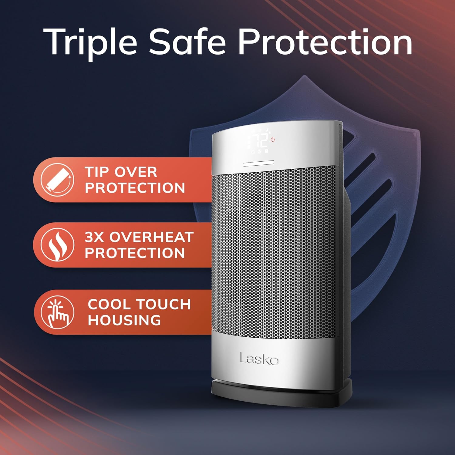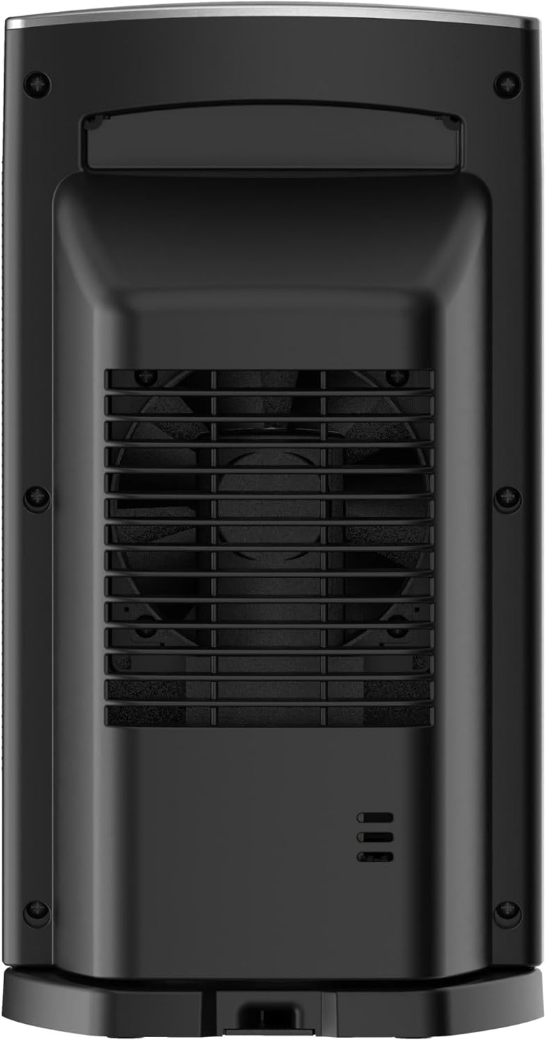 Introducing the Lasko Ellipse Ceramic Tabletop Heater with Remote Control - the perfect solution for all your personal heating needs! With 1500-Watts of comforting warmth, this heater is designed to provide you with maximum heating efficiency, while remaining quiet at <40dB. Thanks to its wider grill and widespread oscillation, this personal heater ensures optimal heat distribution in your space, making it perfect for your home or office. The ceramic insert plug, cool touch housing, child lock, and tip-over sensor provide additional safety, so you can enjoy your cozy space with peace of mind. Controlling your personal space heater has never been easier! With touch sensing controls and a digital display, you can easily adjust the temperature and set the 12-hour auto-off timer in 30-minute increments up to 2 hours, and then in 1-hour increments up to 12 hours. Plus, the AutoEco thermostat maintains your desired room temperature with less energy. Take control of your personal space heating with the multi-function remote control that operates all heater functions from a distance. And, thanks to the built-in handle, you can easily move the heater from room to room for maximum portability. The Lasko Ellipse Ceramic Heater comes fully assembled and is backed by a 3-year limited warranty. Don't wait any longer - experience the ultimate in personal heating comfort with Lasko.
