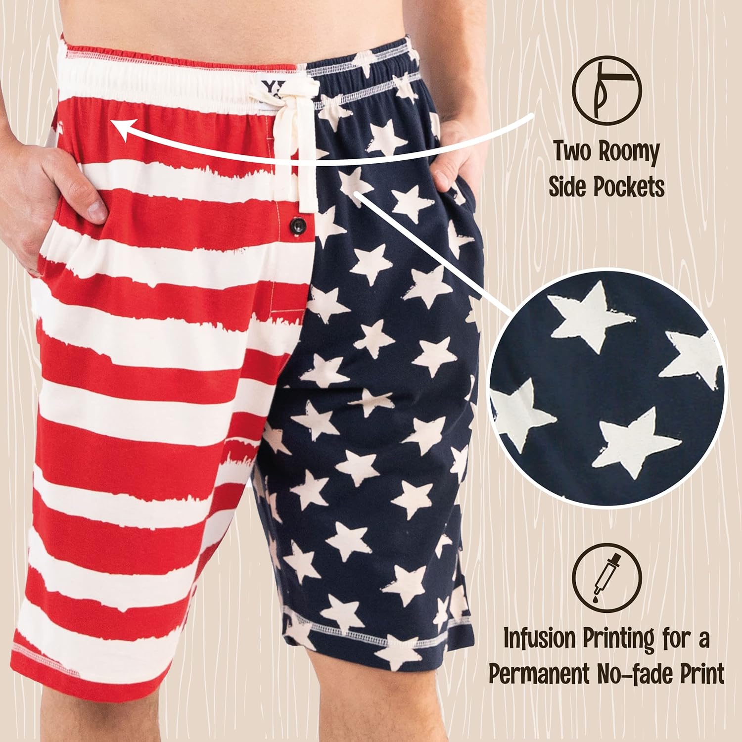 Add a little novelty to your day or night with the LazyOne Pajama Shorts for Men! Choose your favorite pattern from our range of designs—from grizzly bears to fishing to Bigfoot himself—and lounge around in cool, cuddly peace all summer long with these men's pajama shorts. Made from 100% cotton, the fabric is super light, so you can sleep cool and dream heavy on hot summer nights. Plus, these sleeping shorts have pockets!BR>Available in sizes from XS to 3XL, these cotton pajamas are perfect for wearing during midnight kitchen raids and long movie nights. Like all of our apparel, they come in several fun designs to let you add personality to your pajamas. Match them with a coordinating pajama shirt (sold separately) to say what you're feeling with your sleepwear, and maybe even share that mood with others. Our permanent no-fade prints will make sure that those quirky patterns and sayings are long-lasting. This pair of shorts is made from preshrunk cotton, so it's safe to put in the washing machine. Wash it on a cold cycle with like colors, let it tumble dry on low, and use non-chlorine bleach if needed.LazyOne makes loungewear in various forms for the whole family! Babies, kids, and adults can find socks, slippers, pajamas, and comfy items of all kinds that add just a little something extra to their day. Sometimes it just takes the little things to make someone smile, and that's where our cozy novelty wear comes in!