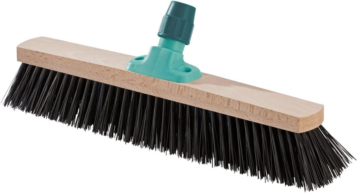 Product Description Whether it's leaves, caked-on dirt, puddles or snow on steps, paved garden paths, pavements or driveways: the Xtra Clean Outdoor Broom with its innovative X-bristles and special bristle mix now brushes even more thoroughly, quickly and efficiently. When sweeping, the front bristles carry the heavier, tougher dirt with them. Then the X-shaped, firmer bristles at the back remove the finer dirt particles. The X-bristles are composed of resistant, waterproof Elaston. They are resistant to acids, caustic solutions, fuel and oil and are the ideal choice for workshops and garages and generally outside. The angled threaded broom joint is another plus for sweeping efficiency. The angled joint means the broom doesn't have to be tilted when brushing and allows all bristles to make full contact with the floor. The Xtra Clean Outdoor Broom has a sweeping width of 50 cm. The wood used in the shock-resistant broom head comes from 100% well-managed forests. The separately available wooden handle can be fixed securely and stably via the threaded joint - Leifheit part number 45020. Leifheit's wide range of cleaning products are designed for small to large homes. Each is designed for practicality, ease of use and functionality, and are sufficiently robust for frequent use. They are carefully made from good quality materials to ensure long service. With innovative materials and different performance attributes, Leifheit offers something for every home. For over 50 years Leifheit has been one of the leading suppliers of household goods in Europe and - true to their motto - have "always better ideas". Their innovative products, with trendsetting designs, are of highest quality and are one of the characteristics of the Leifheit brand to make life at home easier and more convenient. Leifheit's - the cleaning experts. Set Contains: Broom head