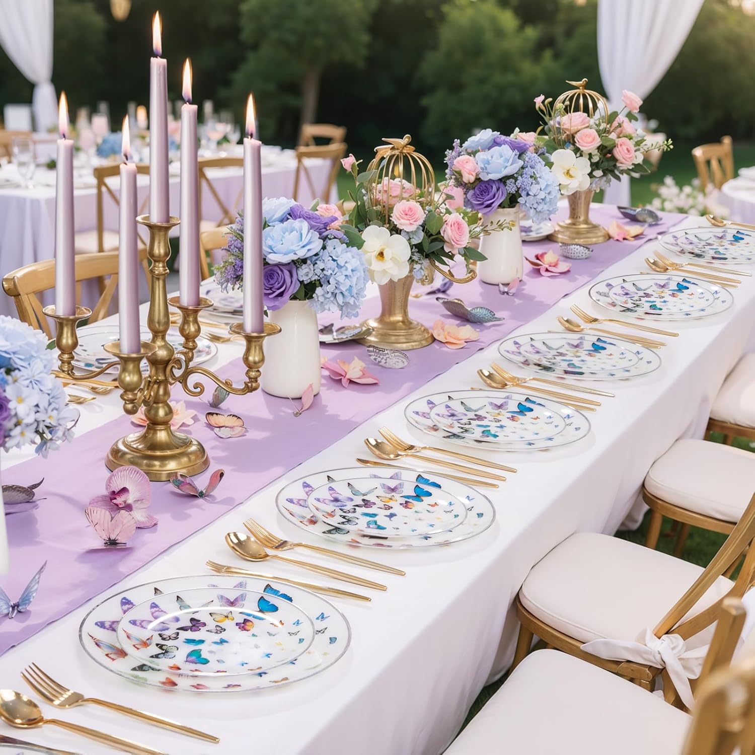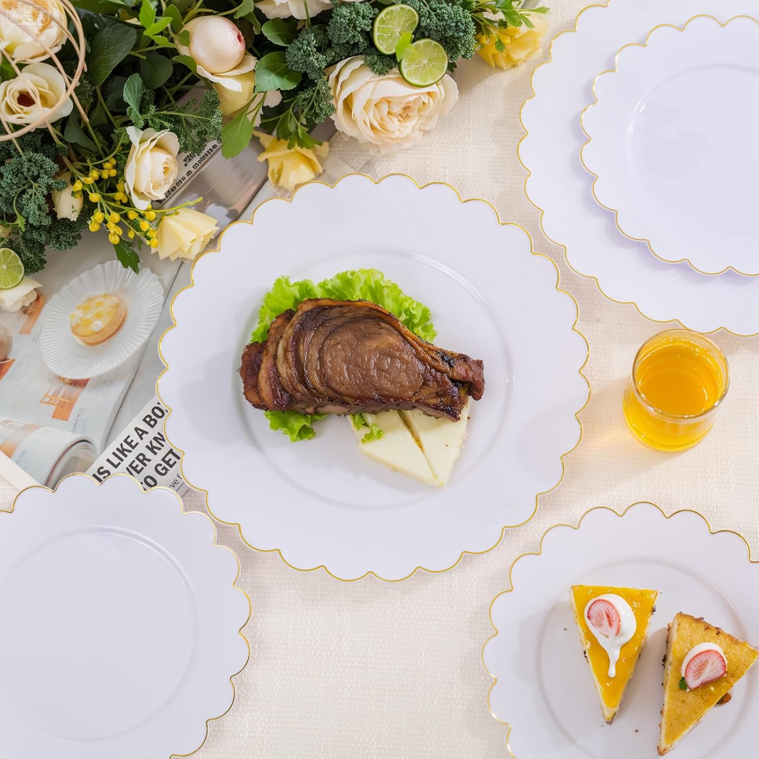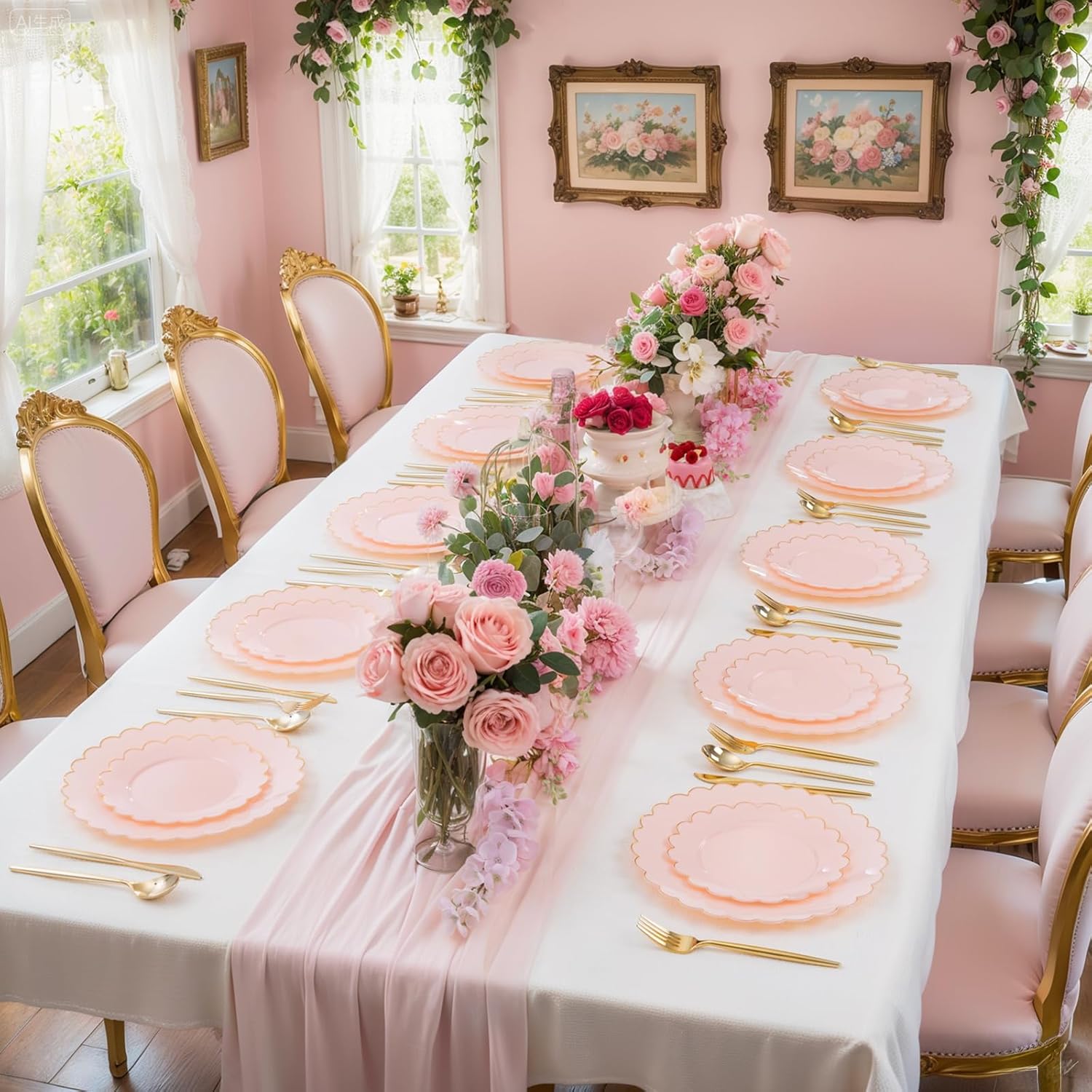| Color | 60pcs Pink Gold Rim Plastic Plates |