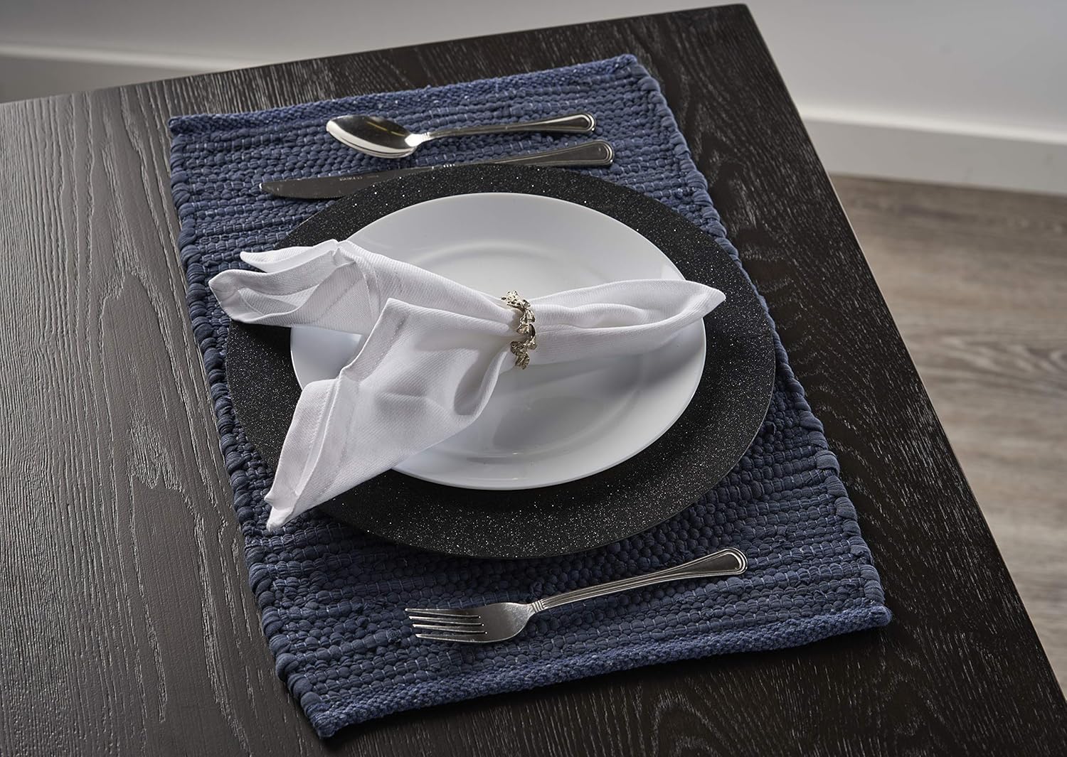 With an intricate woven design, this piece draws the eye but remains a classic with the well-toned deep blue coloring. From a friendly brunch to a family dinner, set your table up for success and a loving atmosphere with these place mats. These pieces can be left alone or accented with different décor. With regular upkeep and care, these place mats are sure to last for years to come. Rich in texture, these place mats add a wonderful extra touch to the room. Bring these home today!