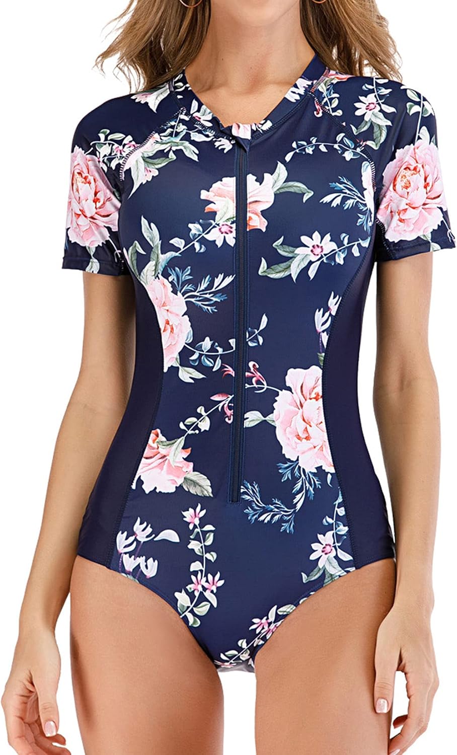 Lu's Chic Women's Rash Guard Zip Wetsuit Long Torso Swimsuit Surf Swimwear One Piece Sleeveless Bathing Suit Zipper Racerback UV Sun Protection Rashguard Summer UPF 50+