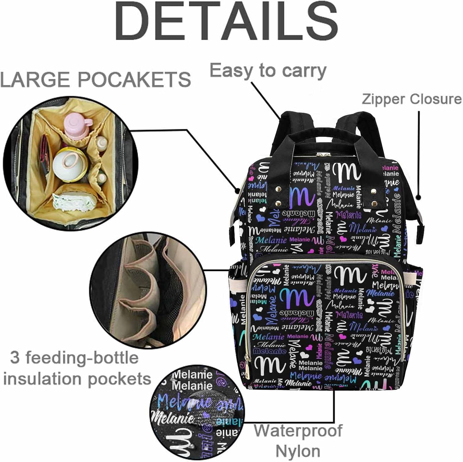 Functional hands-free diaper bag backpack for parents! The front compartment of the backpack diaper bag includes 3 separate insulated pockets that can hold 3 bottles. Features mesh fabric pockets to hold snacks and pacifiers. The main compartment has three large pockets and two small pockets that can put diapers, milk that hasn't been drunk yet, and a laundry, and the middle beating capacity can put down a large insulated cup, which can put some food that needs to be insulated. Diaper bag waterproof pocket, you can put your clothes, diapers, and even soiled pants into the pocket, which is waterproof material. Diaper storage bag can hold 4-5 diapers, you can quickly grab the diapers from the pocket. Cute Christmas elements, so you can have one more decoration to decorate your holiday Back padding and adjustable shoulder straps bring ultimate comfort and stability to keep you comfortable Easy to carry, making your travel more convenient.