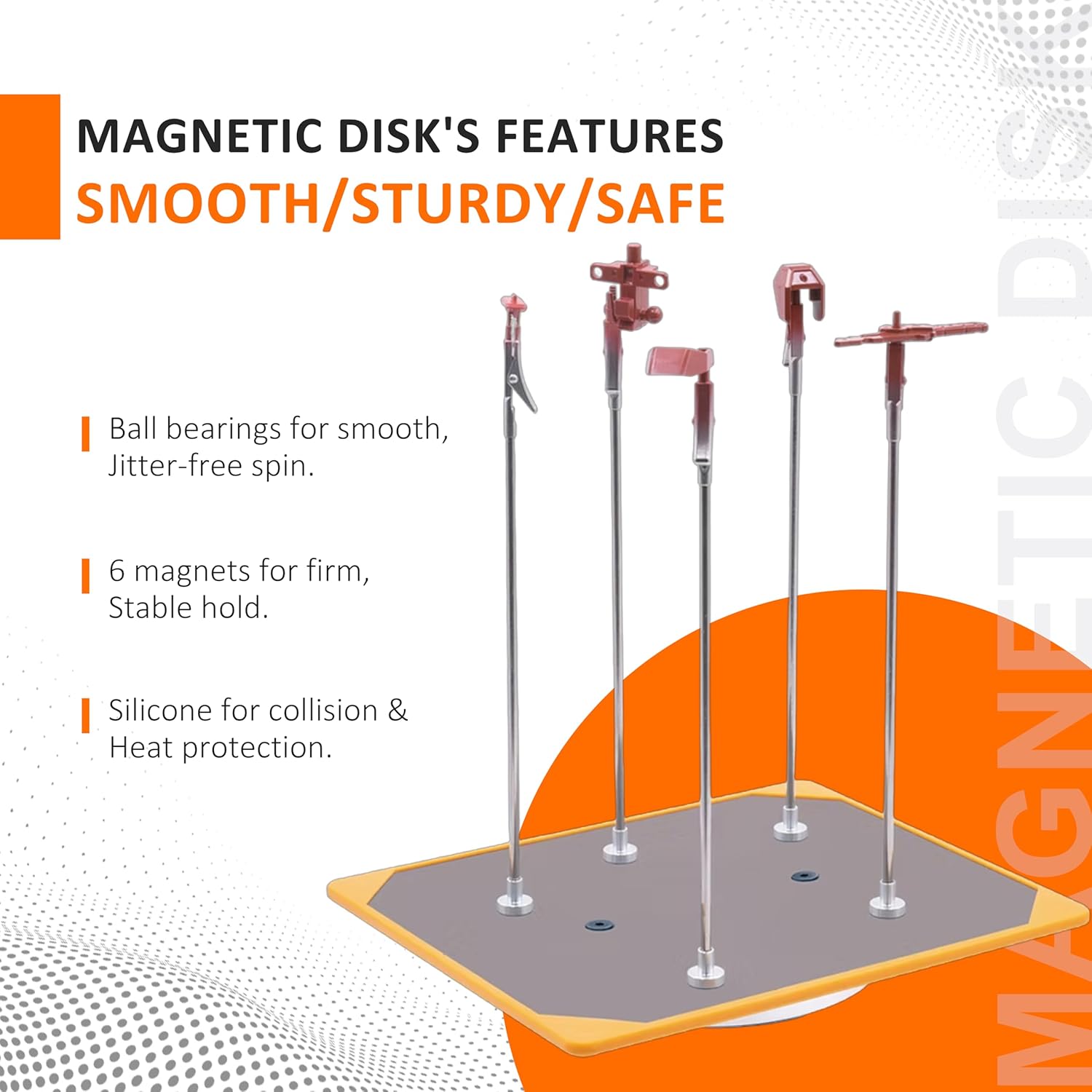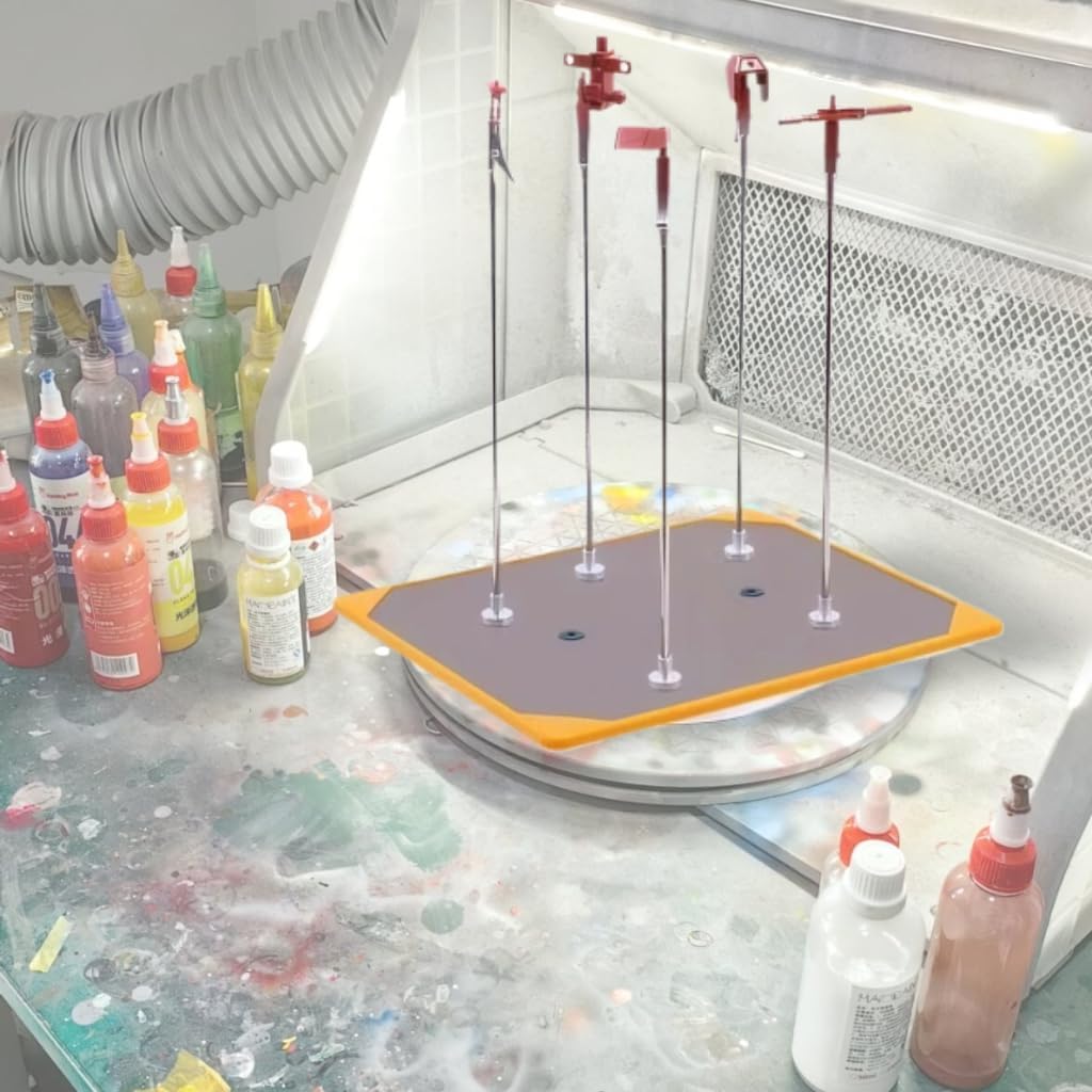 【STRONG MAGNETIC STABILITY】Equipped with a powerful magnetic clamp, it provides excellent stability. As a dedicated optional base for the Paint Clip Master, it can be firmly attached to the metal plate by magnets, facilitating the placement of paint clips and paint sticks to ensure stability and no shaking during use. 【SMOOTH ROTATION EXPERIENCE】The rotating platform based on ball bearings rotates smoothly and steadily. When arranging parts in the painting sequence, the number of overlapping coatings can be easily controlled to achieve a uniform finish. When spraying large components, rotational operation can make the coating more uniform. 【SAFETY SILICONE PROTECTION】The outer periphery of the base is covered with cushioning silicone, effectively protecting the edges. Meanwhile, silicone has excellent heat insulation properties, and it is not prone to heat generation even when used in a drying room, allowing for safe removal and significantly enhancing the safety of use. 【PRECAUTIONS】The product has sharp parts. Be careful when handling and storing it. Do not disassemble or modify. Please keep out of the reach of children. Avoid using and storing in high-temperature or humid environments. 【INFORMATION MEMO】The product does not include Paint Clip Master and needs to be purchased separately. It comes with 6 magnets for use in combination.