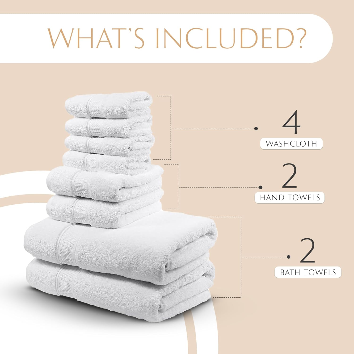 | Size | 8-Piece Set (2 Bath, 2 Hand, 4 Washcloth) |