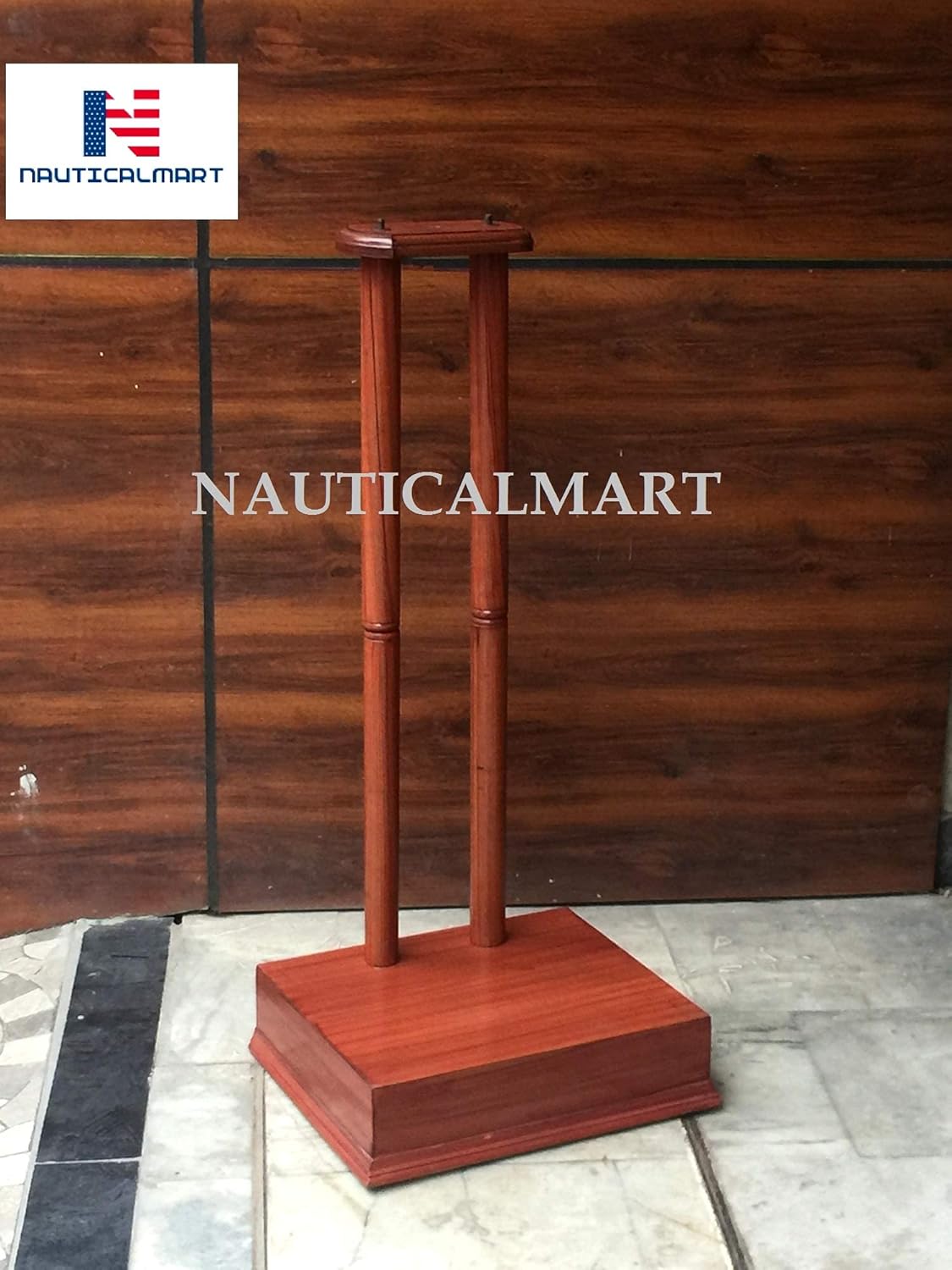 Medieval Armour Breastplate, Lorica Wooden Brown Stand Handmade with Natural Top Grade Wood, Our Medieval Armor Breastplate and Helmet wooden display stand is a perfect stand for all kind of yours Medieval Costumes. The Wooden Armor Helmet Stand features a natural design with polish stained finish.You do not need any tools to assemble this unique design stand. It comes with the 8x8" size base, lower shaft, crossbar and upper shaft.The upper shaft is used for the helmet display while the crossbar and lower shaft supports the Body Breastplate Armor, Armor Chestplate , Knight Medieval Costumes, Spaulders and Armour Gorgets.This stand is perfect for all kind of Medieval Greek Roman Spartan Viking Scottish Armors and Lorica Segmentata. Manufactured by NauticalMart Inc.
