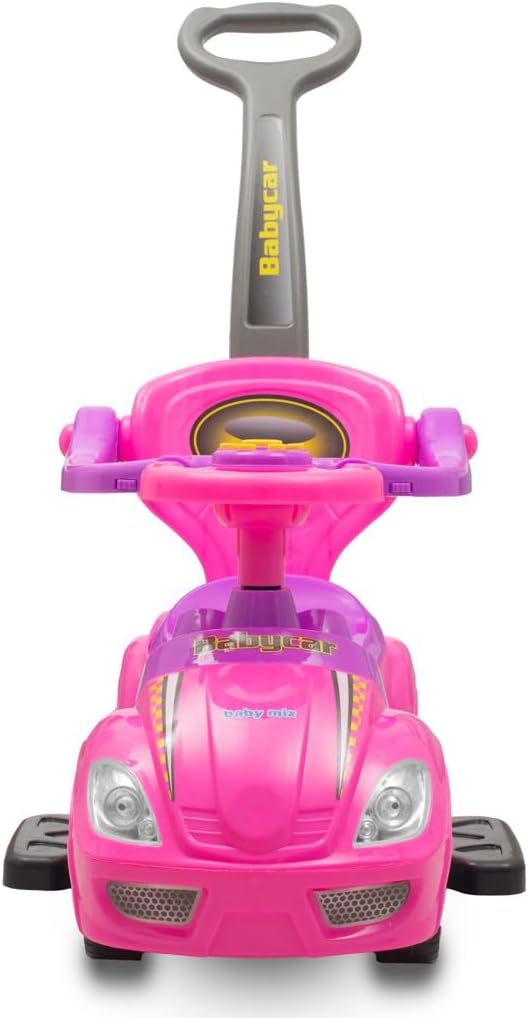 The Baby Mix 3-in-1 baby seat in cheerful colours is made of high-quality plastic and is a great and safe toy. The shape of the toy helps to develop baby's motor skills during the period when they learn to walk. The slide offers many functions - it has removable lower foot rails, a holder and side guards. Imitation steering elements make the toy even more attractive. The vehicle has a steering wheel with music control and horn. Under the seat there is space for toys. The rider is suitable for both the smallest children who can sit and for children who have already learned to walk. Features: - Designed for children from 12-36 months, up to 23 kg. - Can be used as a pusher, walker and seesaw. - Removable guide handle- Under the seat there is space for toys- horn. Side guards that can be removed. - Lower skirting boards. - Sturdy and high quality plastic materialand high-quality Height: 84.7 cm (entire slide with handle), width: 43.5 cm, length: 84.4 cm (length of the slide with handle)