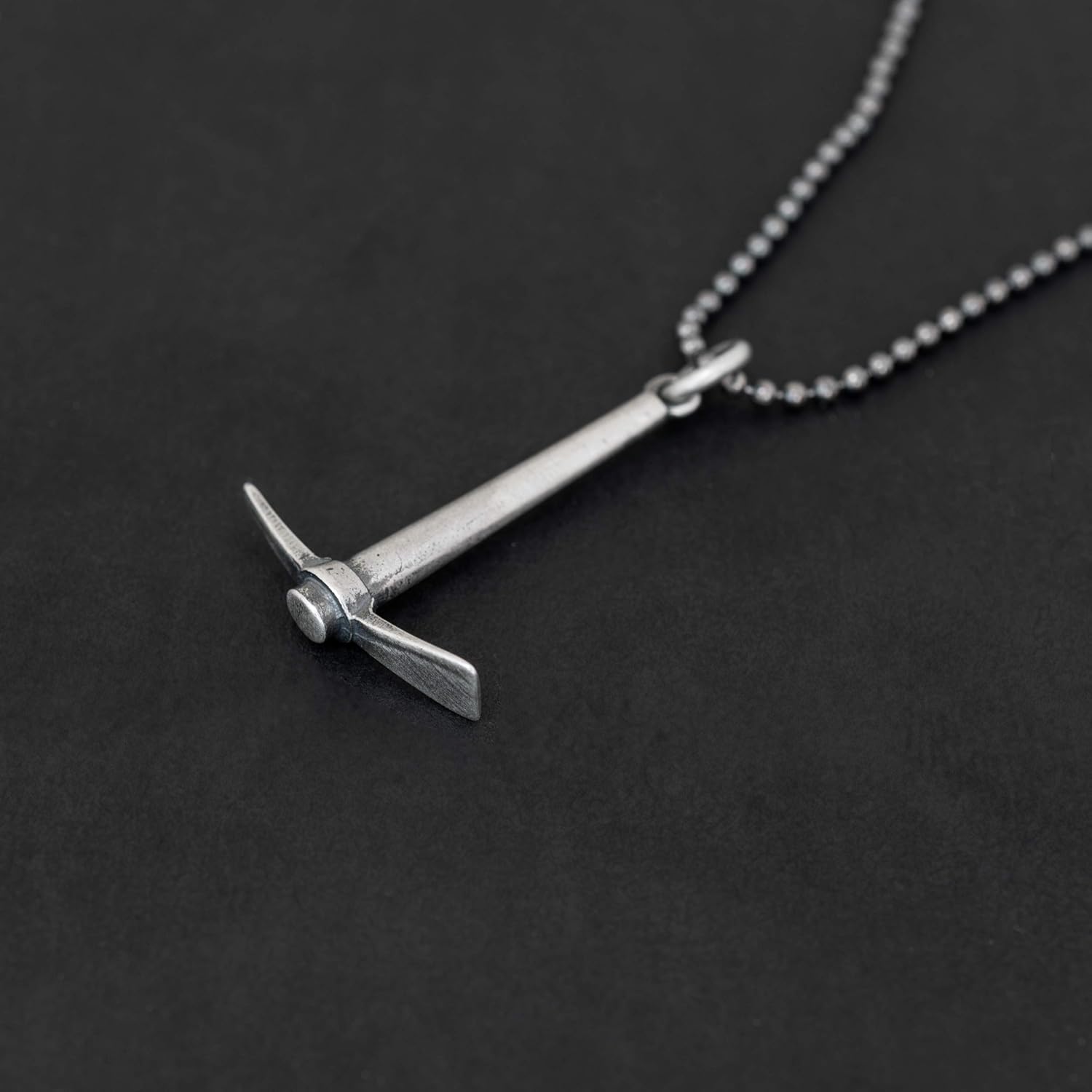The finest jewellery doesn't merely accessorise — it defines who you are. This commanding axe pendant captures attention with its bold, angular design, crafted for those who embrace darker, distinctive fashion. Perfect for construction workers, bikers, and anyone who appreciates substantial silver with genuine character.Forged from 925 sterling silver and intentionally oxidised through chemical treatment, this piece develops a distinctive dark patina that accentuates every intricate detail. The oxidation process delivers that signature velvety black finish whilst making it exceptionally durable and resistant to tarnishing. Weighing 1.8g, this substantial pendant feels reassuringly solid, with each handcrafted piece developing unique character variations.This transcends ordinary jewellery — it's a powerful statement of strength and individuality. The axe symbolism speaks to construction workers, outdoor enthusiasts, and anyone who values quality craftsmanship. For bikers and alternative fashion devotees, this chunky aesthetic provides essential dark appeal with authentic credibility. Works brilliantly layered with gothic pieces or worn solo for maximum impact.Ideal gift for tradesmen, outdoor enthusiasts, or anyone embarking on construction projects — representing the tools that transform dreams into reality. Whether building, creating, or making your mark, this pendant embodies that spirit of determination.Each piece arrives in sustainable packaging including presentation box, velvet pouch, and paper bag. Meticulously crafted in Greece by Emmanuela Alevizopoúlou.Weight: 1.8g | Height: 26mm | Width: 20mm | Available with black eco leather cord, sterling silver rolo chain, or sterling silver ball chain, all with sterling silver clasps in 50cm, 55cm, or 60cm lengths.