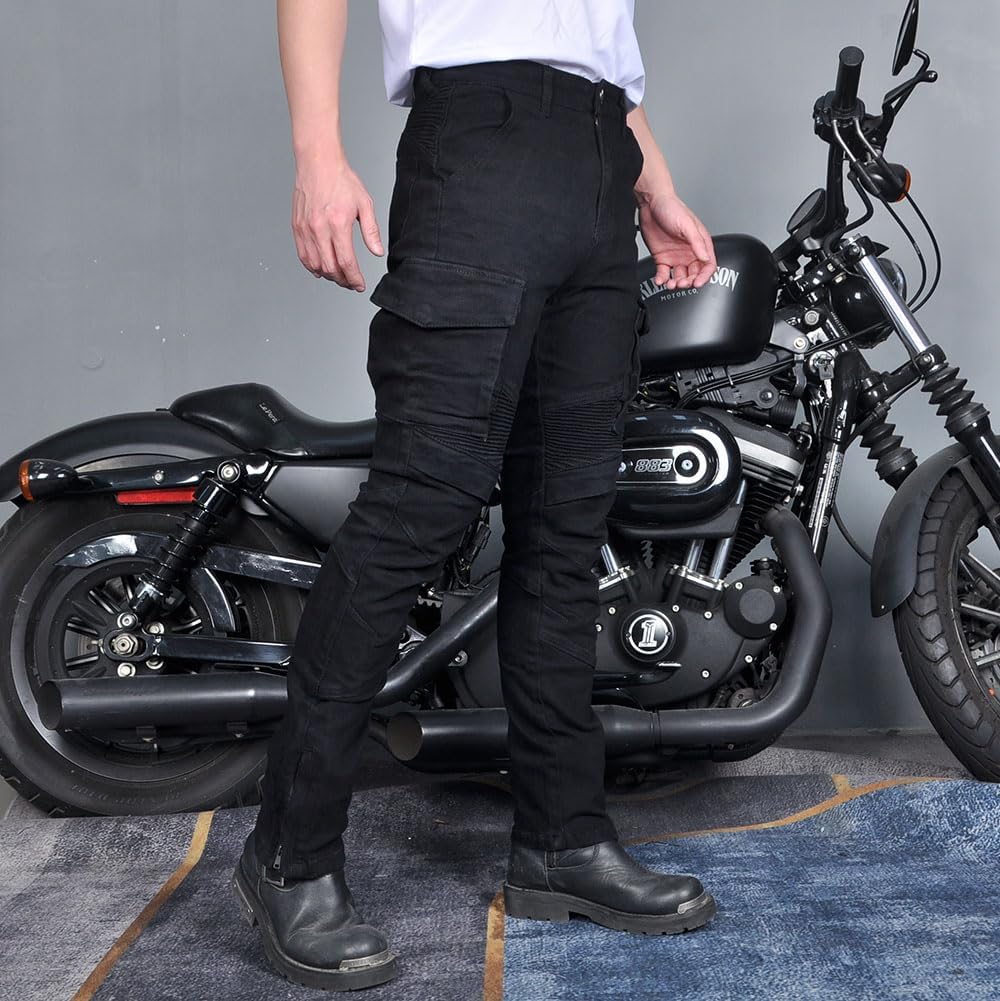 • 4 Protective CE Armor(REMOVABLE): Motorbike pants come with knees and hips CE Armor protection pads.To protect the cyclist from common Injuries.The armored motorcycle pants also can be used as daily jeans without the protective pads.