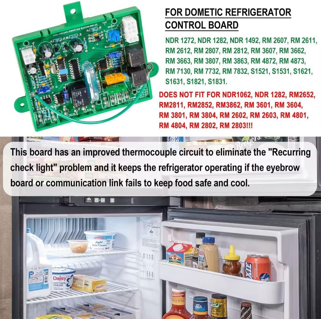 - APPLICATION: The micro p-711 control board is used in 2-way, 3-way, AMES, AES, adjustable-temperature, and fixed-temp. Compatible with Dometic refrigerators following models: NDR 1272, NDR 1282, NDR 1492, RM 2607, RM 2611, RM 2612, RM 2807, RM 2812, RM 3607, RM 3662, RM 3663, RM 3807, RM 3863, RM 4872, RM 4873, RM 7130, RM 7732, RM 7832, S1521, S1531, S1621, S1631, S1821, S1831.