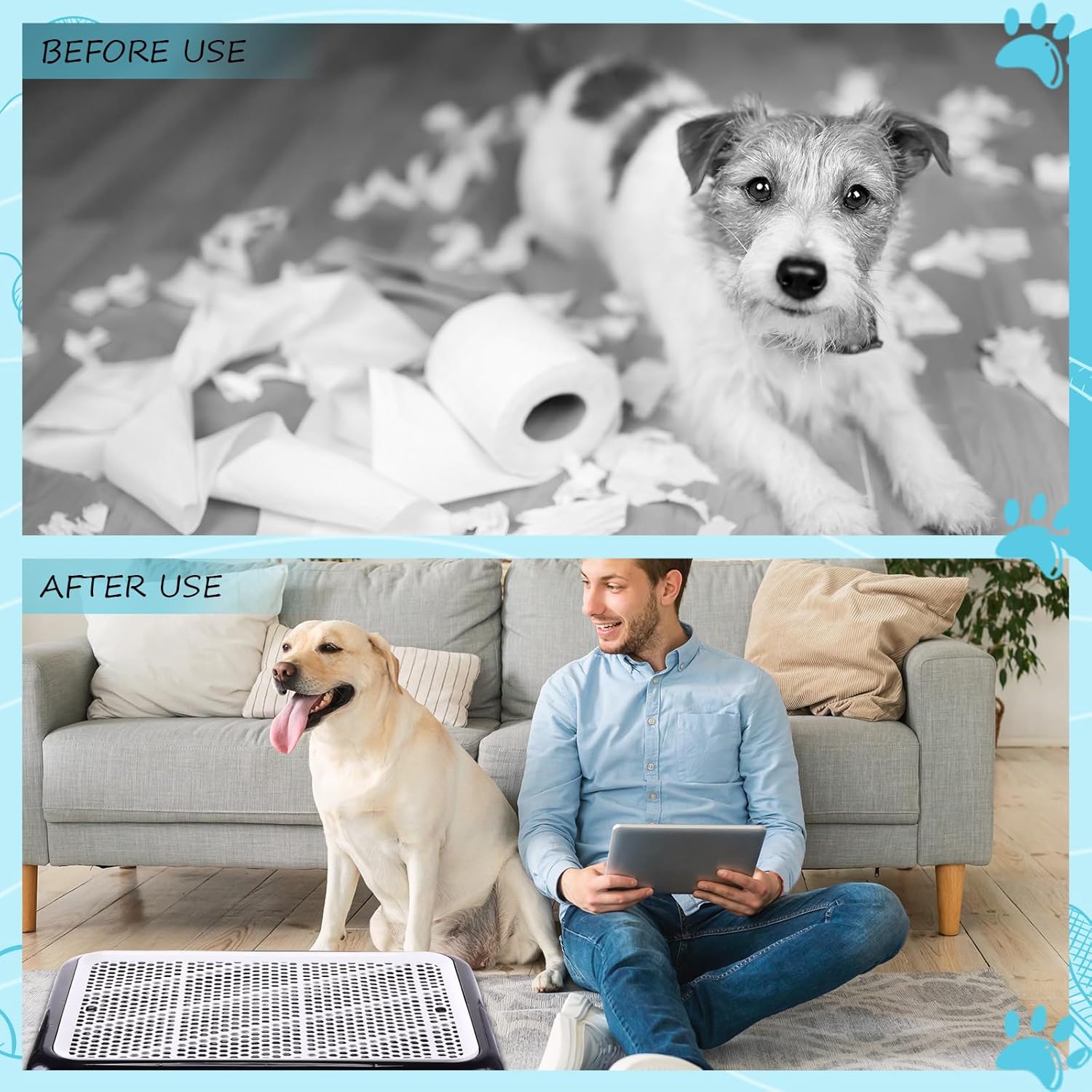 • Low Entrance Design: our dog indoor potty is reasonably designed with a low entrance design, making it easy and convenient for most pet dogs to enter and exit, even for elderly dogs who are injured or have limited mobility, helping them develop the habit of fixed point defecation, and the smooth edge can effectively avoid your lovely pets being injured while moving