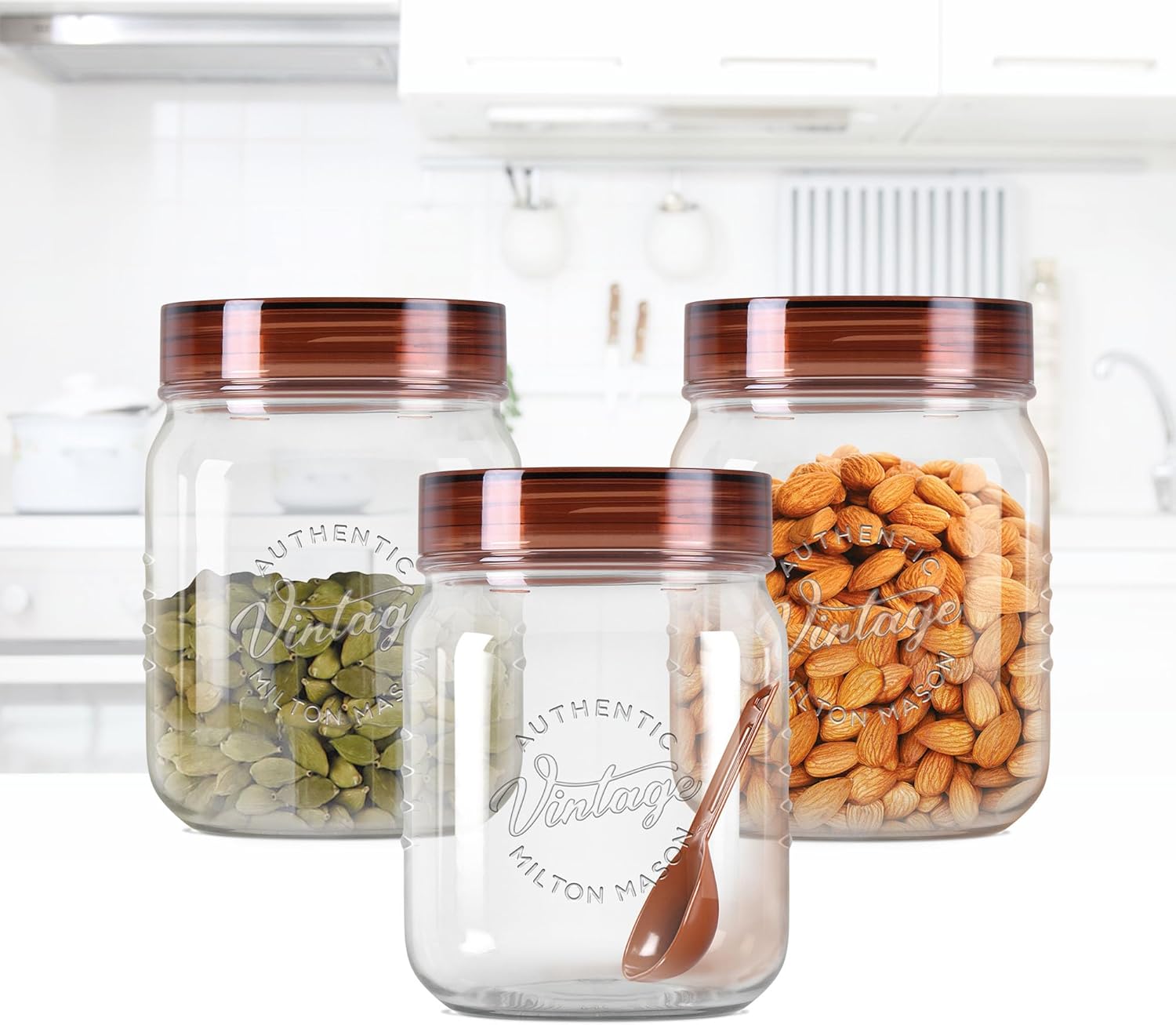 Made of quality food-grade material with a transparent, glassy finish, Milton plastic jars and containers make the contents inside visible. These versatile, lightweight, and durable kitchen storage solutions. Used to keep food, groceries, or small items. Made from sturdy plastic, they are easy to clean and feature an airtight lid to keep contents fresh. Ideal for organizing your kitchen, pantry, or any space where you need to store items safely and efficiently, these containers are airtight and leak-proof, making them perfect for storing cookies, snacks, food grains, and dry fruits.