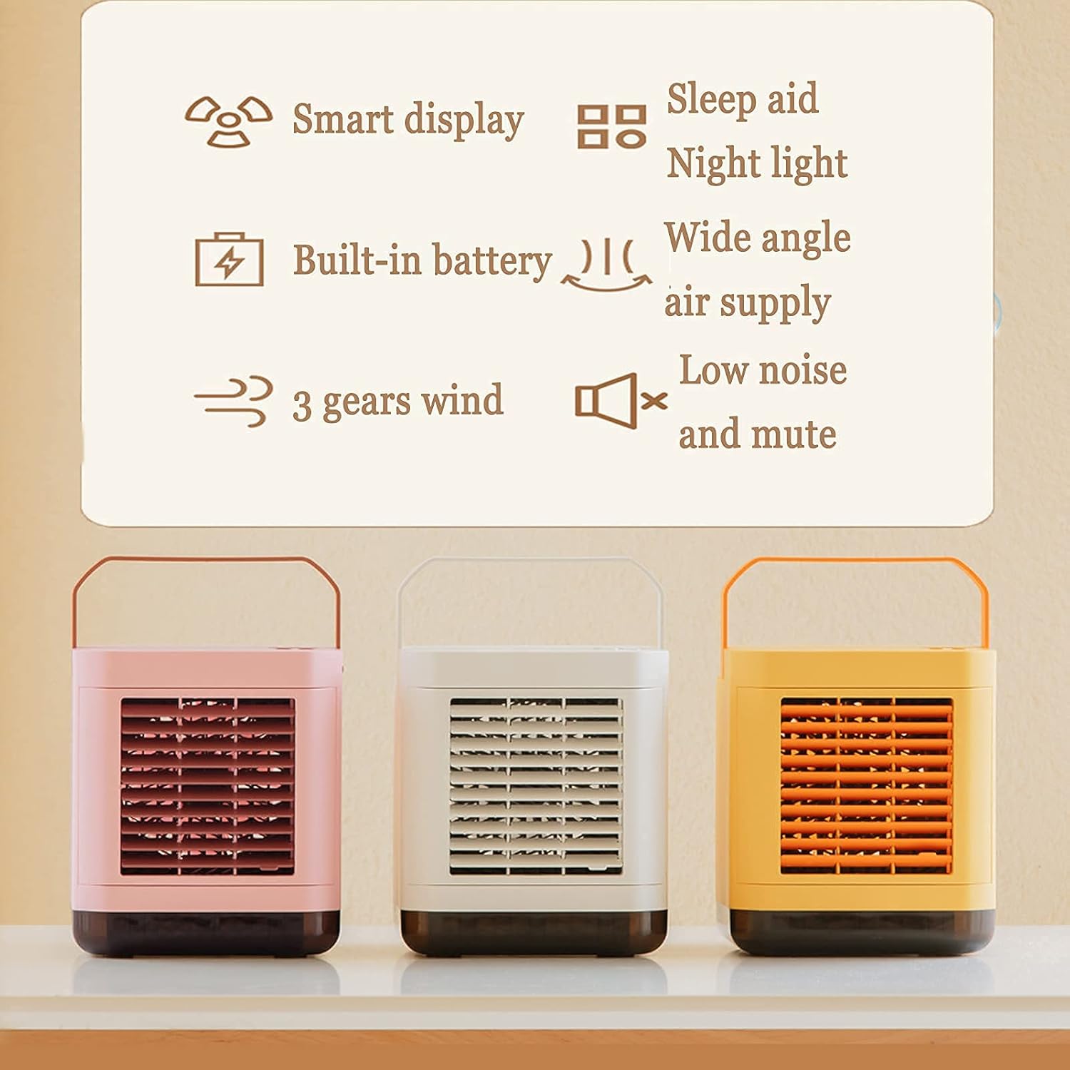 In the hot summer, you need a portable and compact air cooler to provide you with a cold summer.Our multi-functional portable air cooler is perfect for your requirements. Let you know us better Product DetailsProduct name: water cooling fanBattery voltage: 3.7VBattery capacity: 2000mAhOutput power: 4WInput voltage/current: DC5V/1AWorking current: 1/200mA, 2/380mA, 3/640mAProduct material: ABSProduct size: 17.5*16.5*15.5cmProduct weight: 800g FeaturesEnjoy Cool, Clean Air Anywhere.Simply fill with water, plug it into any standard wall outlet or USB port .This whisper-quiet fan and soothing night light make it perfect to use throughout the night for a comfortable sleep.It?s lightweight & even convenient for travel! Great for outdoors too! It?s not just safe to use but energy efficient.This personal space air cooler actually cools the air around you, where you need it most, while using the size and power consumption of a small fan. Packing list 1 x Air Cooler 1 x USB Line 1 x Manual Unmatched Quality And Customer Care: If you have any questions, you can contact us by email and we will respond to your email within 24 hours.