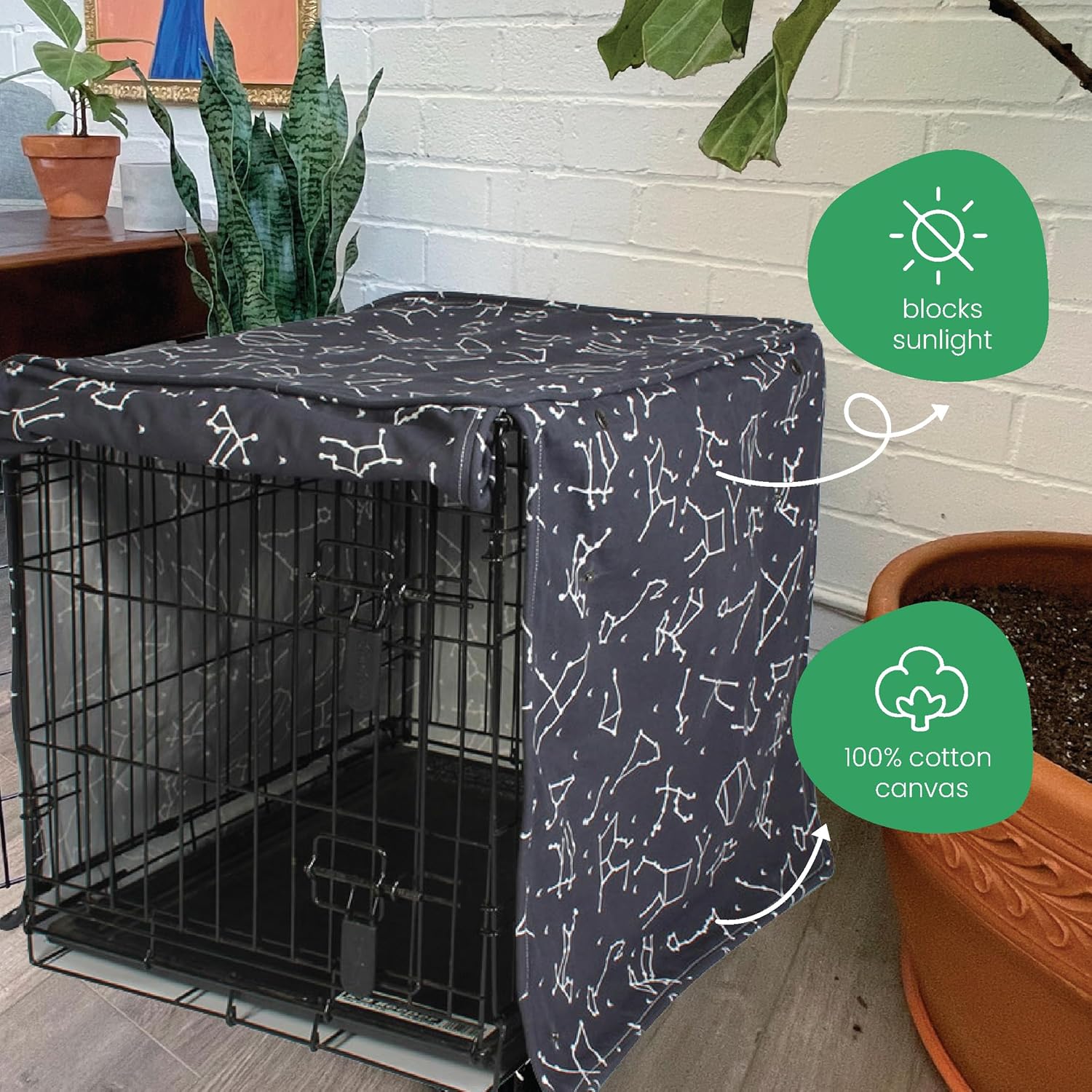 A dog crate cover gives your four-legged best friend the privacy they need and desire. Don't Hide Your Dog’s Wire Crate. Match it to your sense of style with a Molly Mutt crate cover. Your dog is a beloved part of the family — so give them a cozy place to rest at night, or whenever a nap comes calling! Our crate covers are made from durable 100% cotton canvas that breathes while blocking out light. Mix, Match or Coordinate. Choose from hundreds of combinations to make the perfect comfy home for your pup. Pairing a dog bed duvet cover with a crate cover is a great way to bring both style and comfort to your dog’s crate. Up, Down, Up & Down. It’s Up to You. The Molly Mutt crate cover has front and right-side panels that roll up so you can use either door on your crate. No need to move your crate to use this crate cover. A Statement Piece. With 20 patterns to choose from you can turn that ugly wire crate into a featured piece in any room. Make it stand out with a bright color, or blend in with a dark geometric design. This cover for dog crates measures 30" x 19” x 21", and it’s free from any harmful chemicals and fire retardants, making it safe for your entire family.