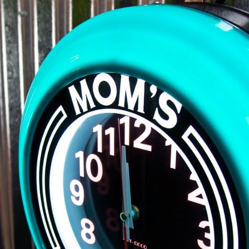 his beautiful, retro style Art-Deco clock is one of our all-time best selling items. The TURQUOISE Art-Deco comes with a standard "MOM'S BAR & GRILL"