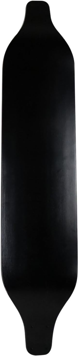 This longboard has a drop down shape, where the middle of the deck sits lower than where the trucks are mounted. The trucks are actually placed higher than the standing platform which allows for greater stability at high speeds because the deck is so low to the ground. Drop down longboards are designed for pushing, freeriding, and relaxed cruising. This shape measures 8" x 40" with a 32.5" wheelbase. Featuring angled truck mounts, this shape has extra turn and carve compared to other drop down shapes.