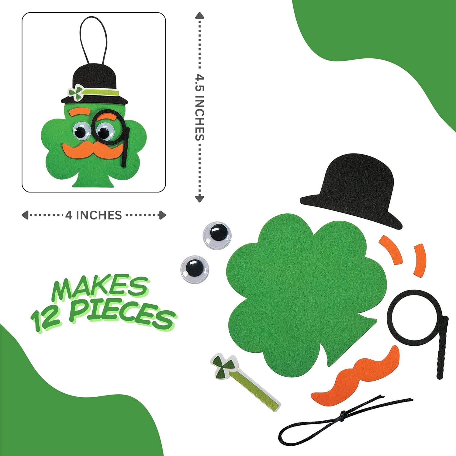 Celebrate St Patrick’s Day with this foam shamrock with mustache ornament craft kit designed for creative fun. Each set includes 12 peel and stick foam shamrocks measuring about 4 x 4.5 inches with facial features and accessories to customize. Easy no mess assembly makes them ideal for classrooms parties church groups and home activities. Finished ornaments create cheerful festive decorations for doors windows bulletin boards and holiday displays while encouraging creativity and hands on fun.