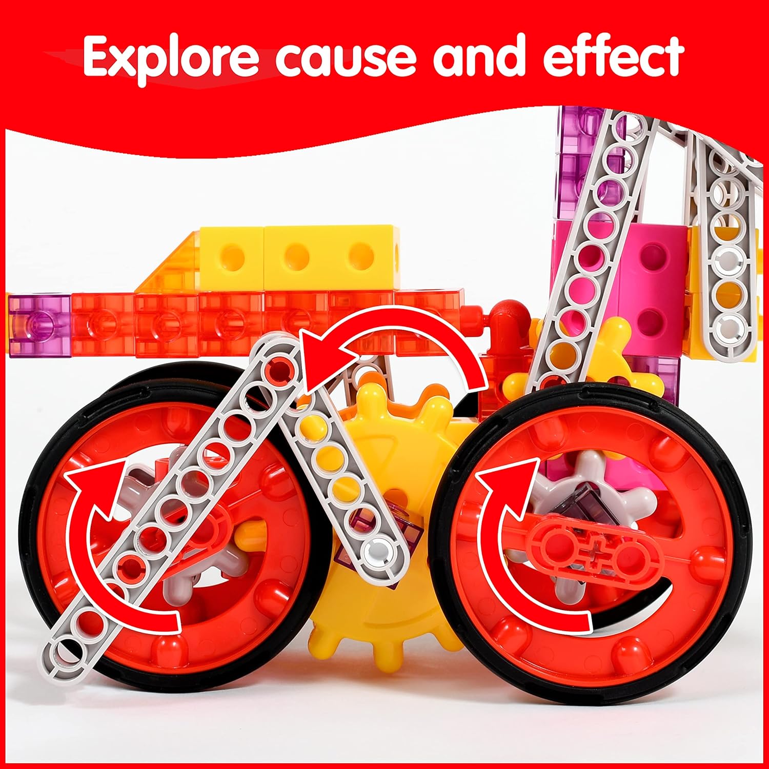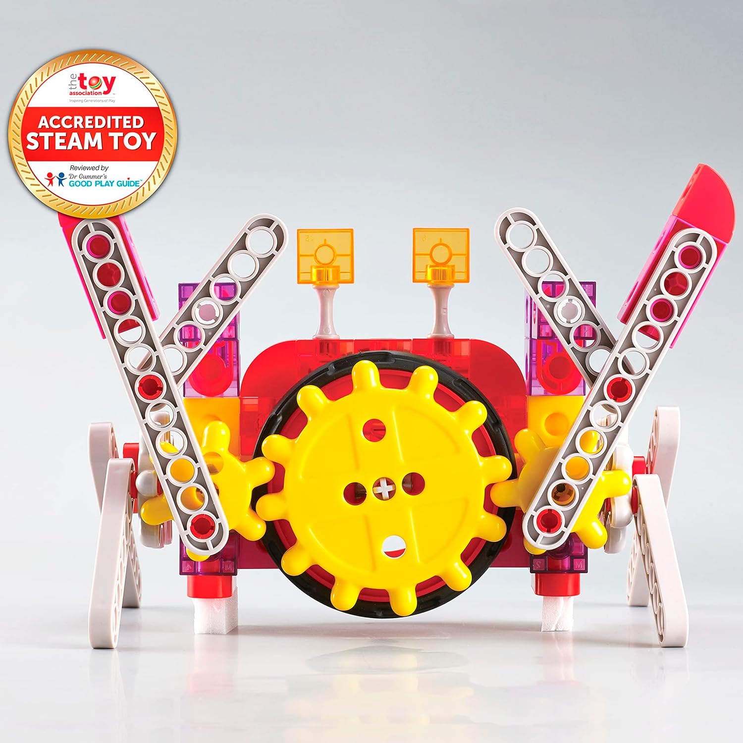 This set features instructions for dynamic animal and machine models. Follow our activity guide or experiment with your own engineering creations! Use these gear models to teach children that actions and design affect outcomes. Develop curiosity, attention to detail and intentional play. The pieces in this kit contain more raw material than some other gear products on the market. The components are durable. And the assembled models are sturdy enough for playtime. This gear toy set is compatible with 2 cm Linking Cubes (Amazon # B014V1D4R4). Extend your collection with these twisting, turning models. For ages 6+.