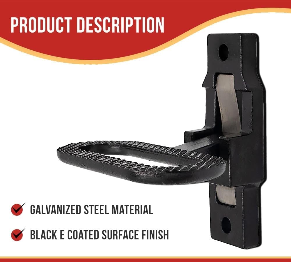 Galvanized Steel Trailer Folding Step - BlackPack Size: 2 PackWorking Load Limit: 450 lbsBreaking Strength: 1350 lbsMaterial: Galvanized SteelOverall Stepping Depth: 3-1/2"Mounting Holes: 1/3” in DiameterBase Plate: 4-3/4" (H) x 1-3/4" (W)Step Dimensions: 4-3/4" (L) x 2-1/10" (W)C/C Distance of Mounting Holes: 3-1/2” Our folding steps are typically used as a convenient and safe way to enter and exit a trailer.The step is designed to be mounted on the trailer's frame, providing a sturdy platform for the user to step on. Install a footstep wherever you require one, whether it's on your utility truck, trailer, RV, or any other location.How Galvanized Steel Trailer Folding Step is used?The step should be mounted in a location that is easily accessible and provides enough clearance for the user to step onto the platform.To use the step, simply unfold it into the horizontal position and step onto the platform. The step is designed to provide a secure and stable platform for the user to step onto, reducing the risk of slipping or falling.When not in use, the step can be easily folded up to a vertical position, saving space and reducing the risk of tripping or injury.