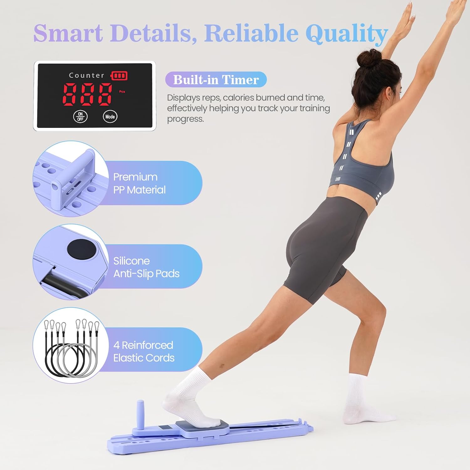 | Included Components | Pilates Board, Multi-combination Handle, Standard Handle, 20lbs+30lbs Resistance Bands, Adjustable Ankle Straps, Knee Pad, Workout Cards, Storage Bag |