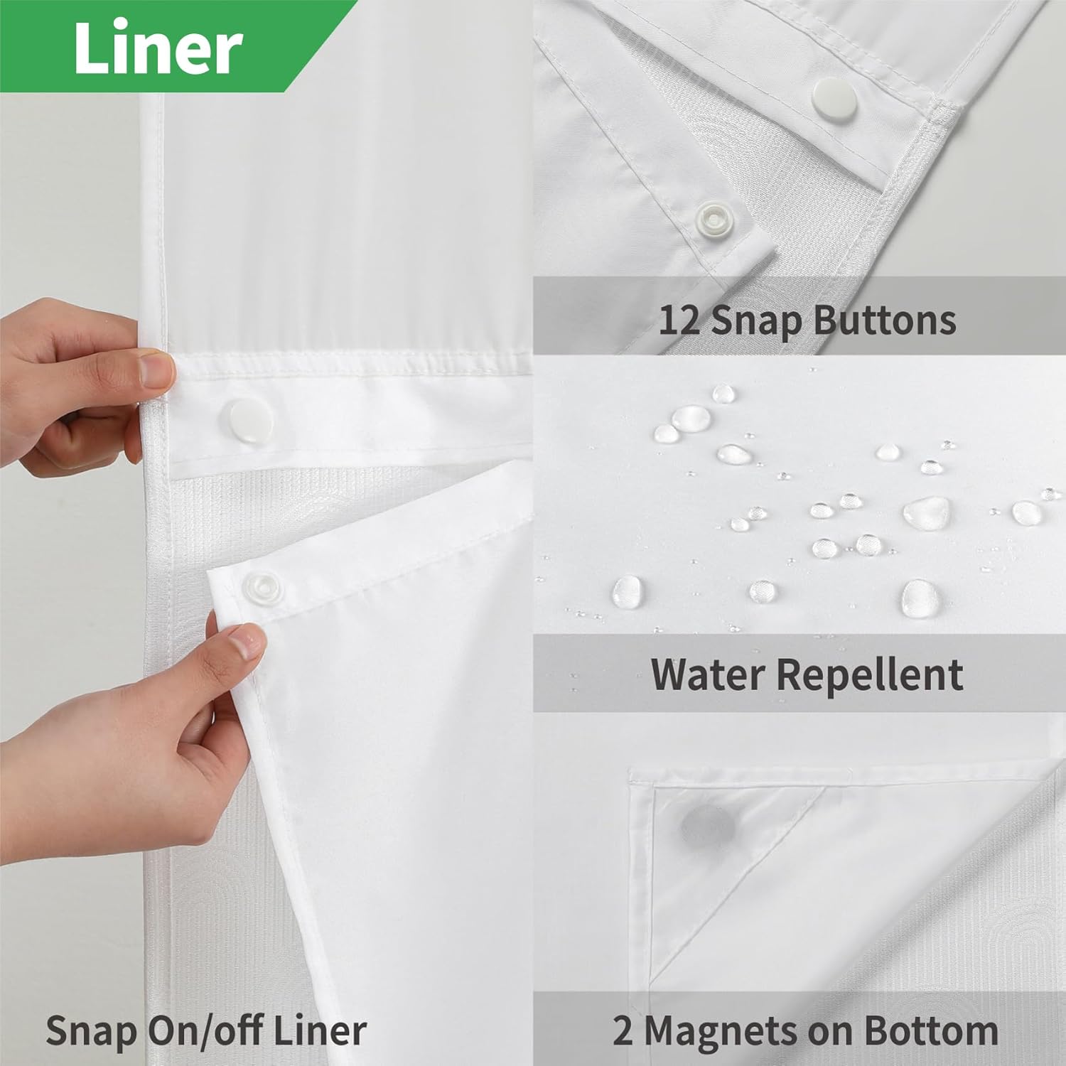 | Additional Features | Built-in Hooks, Machine Washable, Sheer Window, Snap in Liner, linen look |