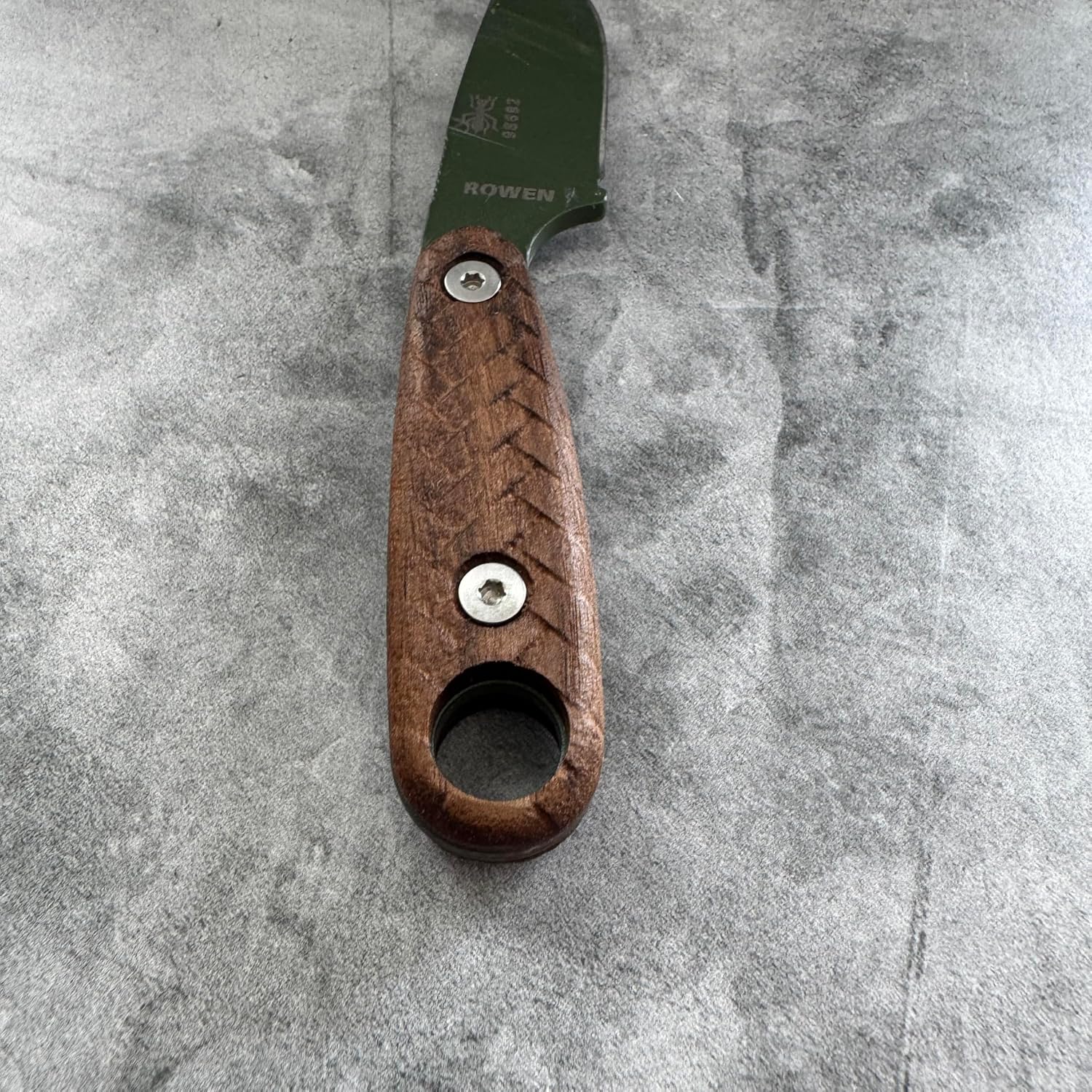 This handmade knife scale is compatible with the ESEE Izula-II, crafted from high-quality hardwood for durability and aesthetic appeal. It fits seamlessly, preserving the knife's balance and ergonomic design. Expert artisans ensure each scale meets high standards of craftsmanship, enhancing both the function and appearance of your knife. Installation is straightforward.