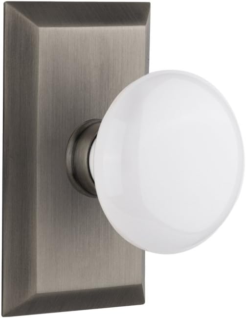 | Item Type Name | Nostalgic Warehouse 713393 Studio Plate with White Porcelain Knob, Privacy - 2.375", Antique Brass |