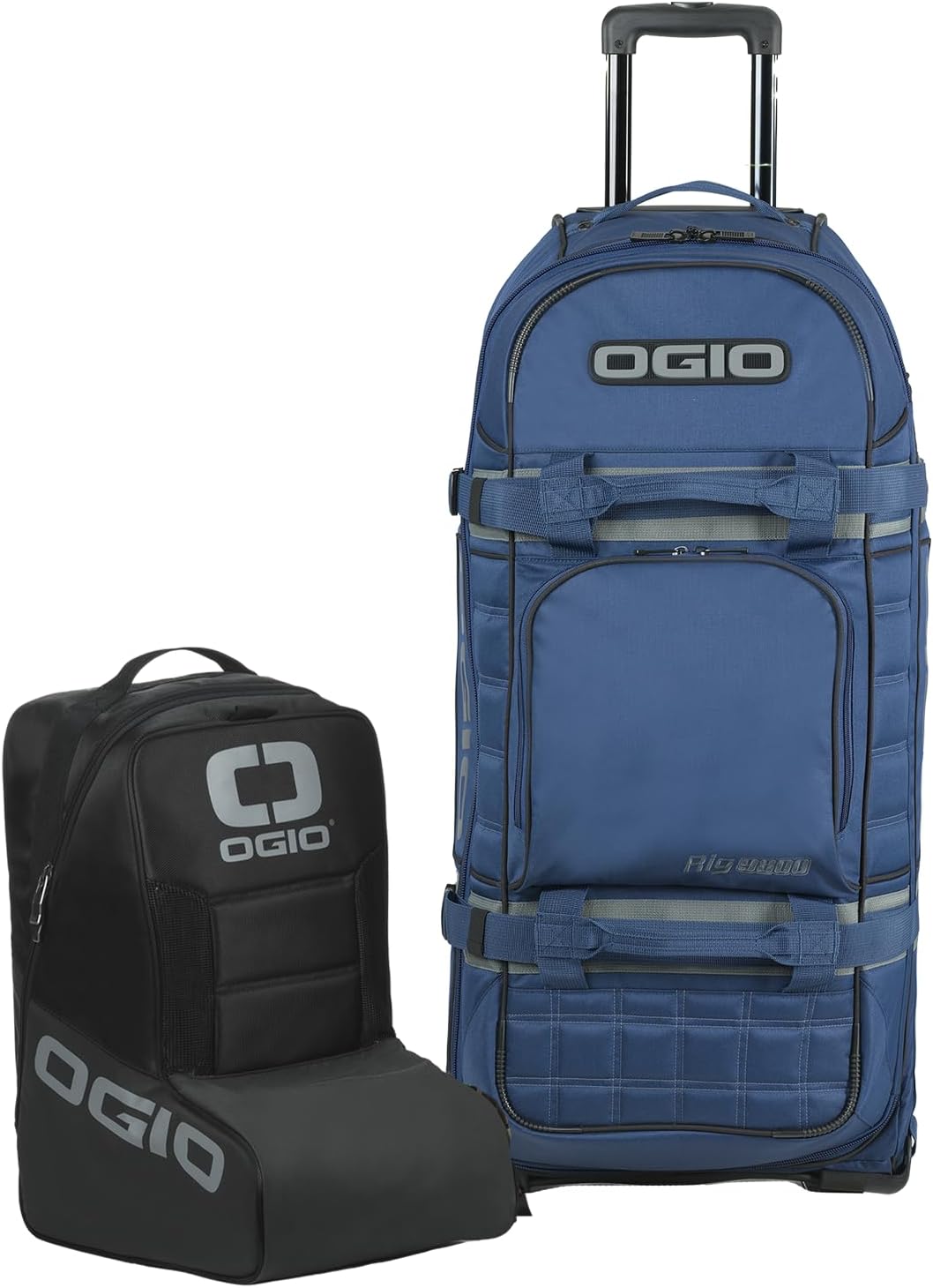 The Rig 9800 gets a facelift and added features in the revamped Rig 9800 Pro. Featuring Ogio’s renowned SLED, the Rig Pro gets an added MX boot bag and changeable wheel set as part of the new overall design. New Features Include: Includes MX Boot Bag, New changeable wheel set, with customizable wheel color options (purchased separately), Internal tie-down straps to hold down boots, your clean clothes or other gear, Upgraded heavy duty grab handles, Internal tie-down straps to hold down boots or your clean clothes, Additional top slash storage pocket, ID window on the top of the bag, SLED (Structural Load Equalizing Deck) System for increased durability in the harshest of conditions, Wide mouth LID opening for easy access, Several multi-use under LID compartments for apparel and smaller gear, iFOM (Integrated Foam) construction throughout for added protection and durability and Telescopic pull handle. Dimensions: 34 ½” H X 16” W x 15 ½” D / 87.6cm H x 40cm W x 39.3cm D 7,620 Cu In / 125 L (Empty) 13.4 Lbs / 6.1 Kg (Empty) 14.8 Lbs / 6.75 Kg with Boot Bag 600D Poly, 420D Dobby Poly