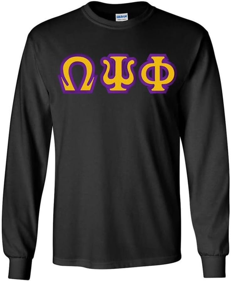 Omega Psi Phi Custom Twill Long Sleeve T-Shirt! Our incredible Greek Long Sleeve T-Shirt for Under $25! (Slightly more for Patterned twill) You now can choose any letter color - truly making this your very own custom greek Custom Twill Long Sleeve T-Shirt Long Sleeve T-Shirt.OFFICIALLY LICENSED - This product is officially licensed. This means your group has approved this product and design. We give a portion of the sales back to the organization. Buyer acknowledges and agrees that although he/she may purchase paraphernalia and other goods (collectively Good) bearing Omega Psi Phi Fraternity, Inc. (OPPF) logos, copyrights, and trademarks, that OPPF retains all inherent rights and ownership in the Good and thus they may not be resold or offered for bid on-line or by any other means. Any attempt to do so will result in the forfeiture of the right to possess the Good, automatically empowers OPPF to have the item removed from sell or as an item for bid, and must be immediately surrendered to OPPF.