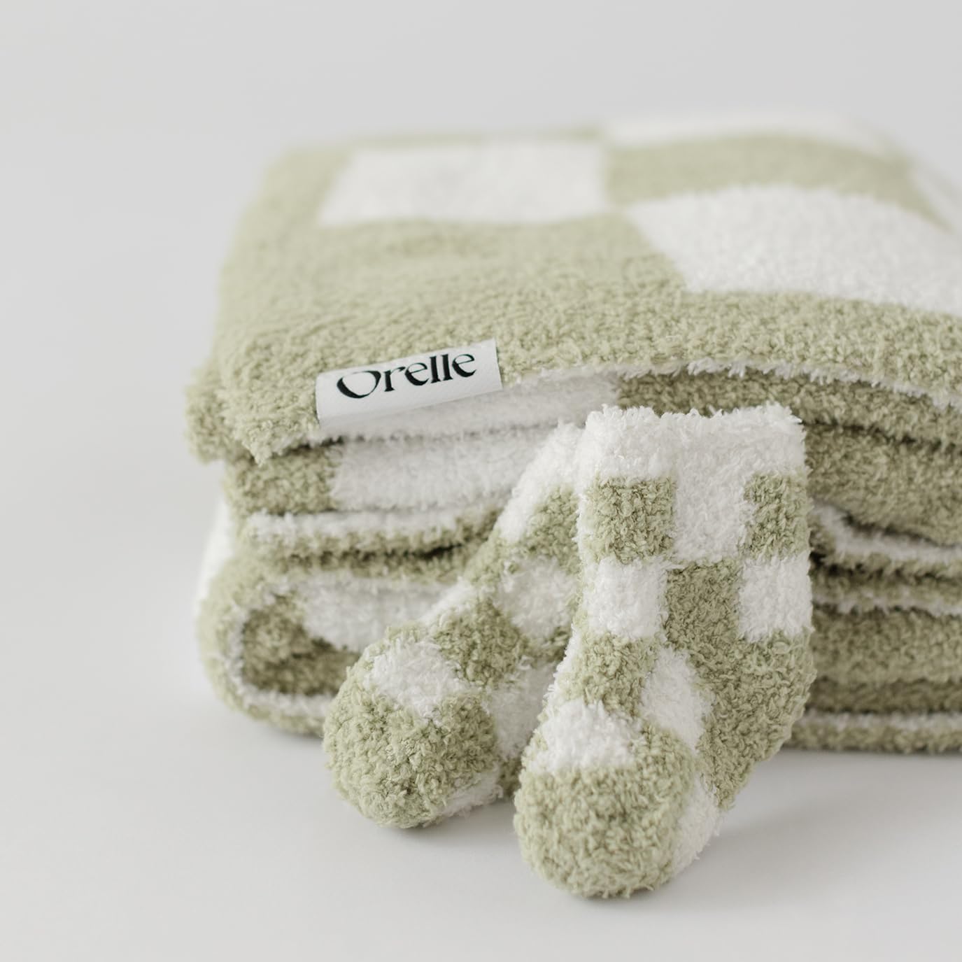 Orelle Blue Checkered Baby Blanket & Matching Socks Set | Cozy Baby Blanket | Soft Plush Blankie for Boys | Checkered Nursery Decor | Newborn Registry Must Have | Blue