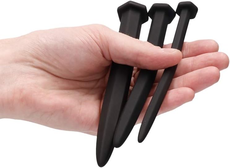OUCH! Introduces a new line of toys for urethral explorers! If urethral sounding is your kink then let these smooth probes deliver the ultimate pleasure! The urethra is lined with super-sensitive nerve endings which can be extremely pleasurable when stimulated. Additionally deep urethral play is the only way to directly massage the prostate. OUCH! Has a variety of urethral sounding probes for beginners as well as advanced users! This set of 3 "nails" have smooth-pointed tips for easy insertion. The flat rounded head allows for safe and easy extraction. Made from super-smooth medical-grade phthalate-free silicone these nails have a total length of 15.5 cm (6.1") an insertable length of 15 cm (5.9") and 3 three different diameters measuring 0.9 cm (0.36") 1.3 cm (0.52") and 1.65 cm (0.65"). Always use with a generous helping of sterile water-based lubricant and insert slowly and incrementally for maximum pleasure. Dimensions package 8.46" x 5.12" x 1.18"Weight package 2.5 ozInsertable length 5.71"Waterproof YesSplashproof YesPhthalate free YesWeight Small: 6 g Medium: 14 g Large: 23 gLength x Width x Height Small: 1.5 x 1.5 cm Medium: 2 x 2 cm Large: 2.5 x 2.5 cmProduct diameter Small: 0.5 cm Medium: 1 cm Large: 1.5 cmMaterials Silicone