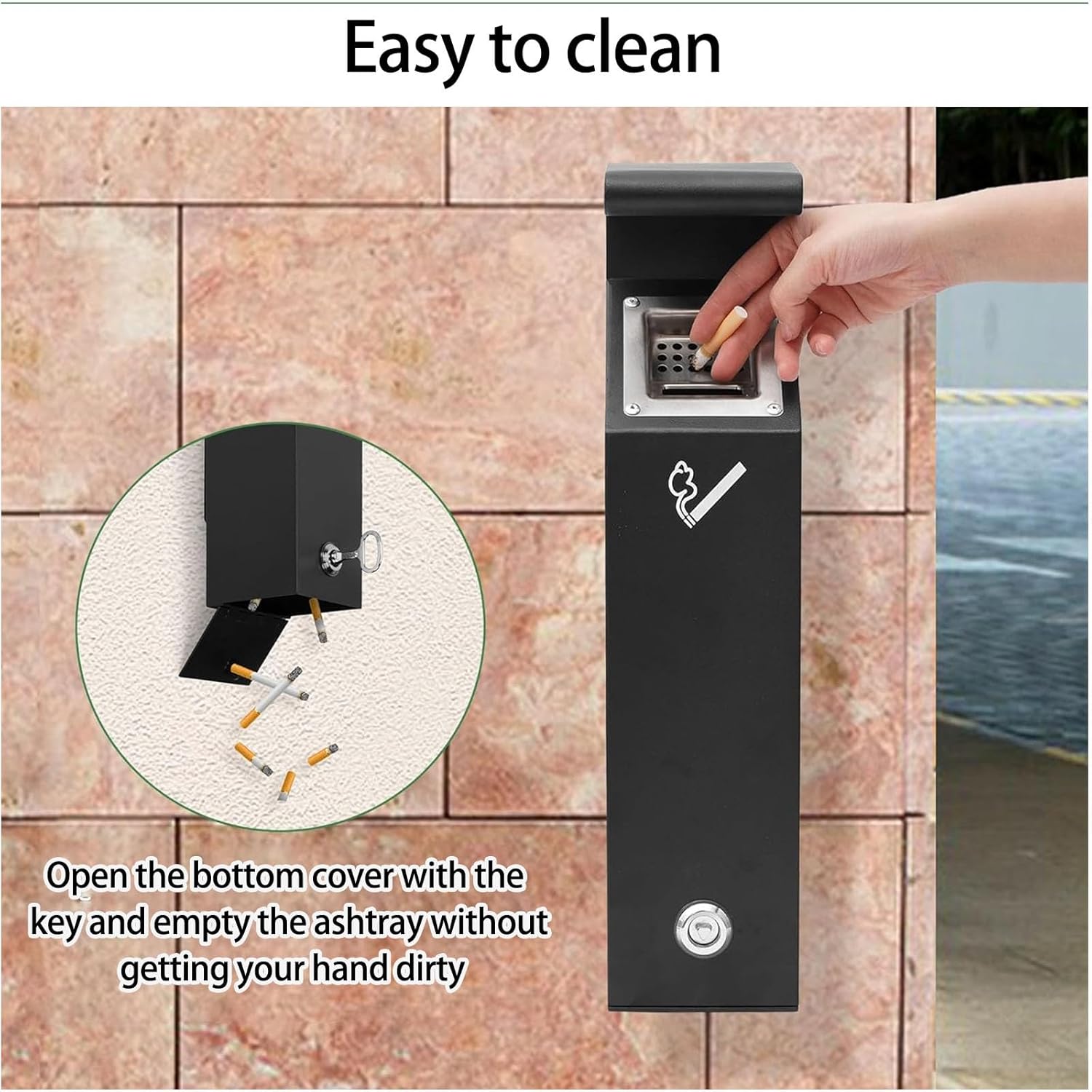 Wall-Mounted Smoker Specifications:Name: cigarette butt receptacle/Cigarette Butt Container/ashtray for outside/Wall Mounted Ash Bin/Commercial AshtrayApplicable scenarios: outdoor gardens, hotels, etcCommercial Ashtray Features:1. safe, beautiful, durable2. Set up columns of smoke according to location and encourage sorting and collection of garbage. Avoid cigarette butts and soot and keep your room clean.Packing list:1 wall-mounted trash can, 2 expansion screws, 1 keySize:15.7 x 4 x 4 inchesColor:Black , Red , White , YellowNotesPlease check the product size to make sure it fits your needs before ordering.Please allow the slight color difference caused by the shooting light and 1-3cm error due to manual measurement