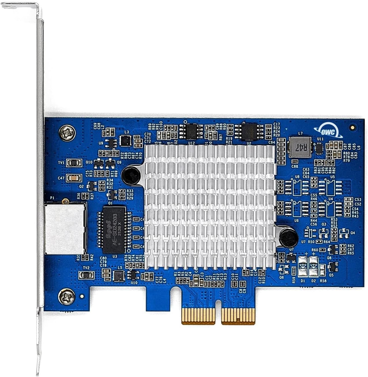 Enter The Fast Lane Content volume and resolutions keep increasing to where it's like being on the highway during rush hour. You gotta leave that commuter 1Gb Ethernet speed in the dust and gain valuable time by entering the express lane. Strap in and buckle up 'cause it's gonna feel like you're driving an exotic supercar when you add the OWC 10 Gigabit Ethernet PCIe Network Adapter to your creative workflow, A/V production, or on-line gaming. Save and Share Up To 10x Faster Using Gigabit Ethernet in pro settings is like trying to win a carnival ball toss game. The hole is smaller than the ball and you lose a lot of time - and money - trying to overcome that limitation. By opening your data flow up with the OWC 10 Gigabit Ethernet PCIe Network Adapter, you can download, share, and save files at over 900MB/s real-world tested speed. That's up to 10x faster than standard Ethernet, so you can beat project deadlines and keep them under budget. If you're a video editor, creative pro, musician, or gamer, this 10G network interface card (NIC) will deliver blazing-fast transfer speeds with signal reliability, stability, and security wherever you work or play: Filmmakers: When the shoot is done, transfer 4.0TB of 4K footage in just over an hour vs over 10 hours. Video editing teams: streamline your workflow, add incredibly powerful collaboration, and work with up to 8K files without dropped frames by adding this card to workstations connected to editing storage such as the OWC Jellyfish. Audio producers: Create a memorable performance at stadiums, auditoriums, studios, and other live sound settings by streaming volumes of audio and video data to multiple destinations in real-time with latency-free AVB precision quality. Photographers: After ingesting CFexpress and SD media cards, send 1000 RAW files (52MB each) to a NAS or remote server in under 45 seconds. The Versatile Internal/External Ethernet Solution Like all OWC solutions with innovation as standard